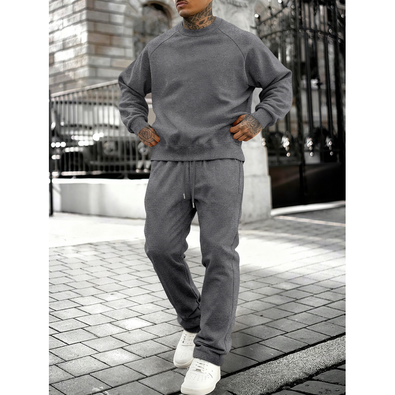 New Autumn Winter Solid Color Sportswear Casual Suit, Minimalist And Relaxed Style, Warm And Comfortable Men's Suit.