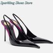 Product Name: New Black Patent High Heels Patchwork Slingbacks Shallow Pointy Toe Women Stiletto Sandals 2026 Summer Sexy Dress Designer Shoes