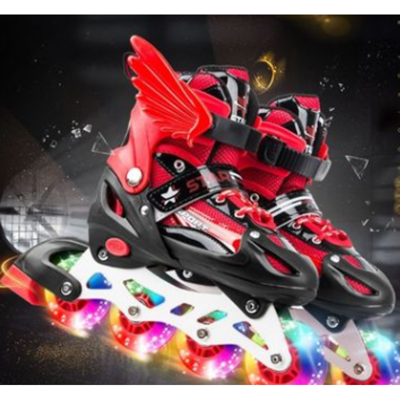 New Boy Girl Children Inline Skates Adjustable Size Flashing Roller Skating Boots for Kids Red S26to32