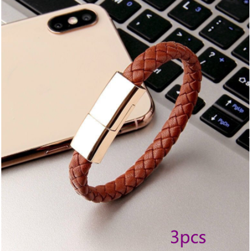 New Bracelet Charger USB Charging Cable Data Charging Cord For IPhone14 13 Max USB C Cable For Phone Micro Cable Brown 3pcs Android interface 20cm