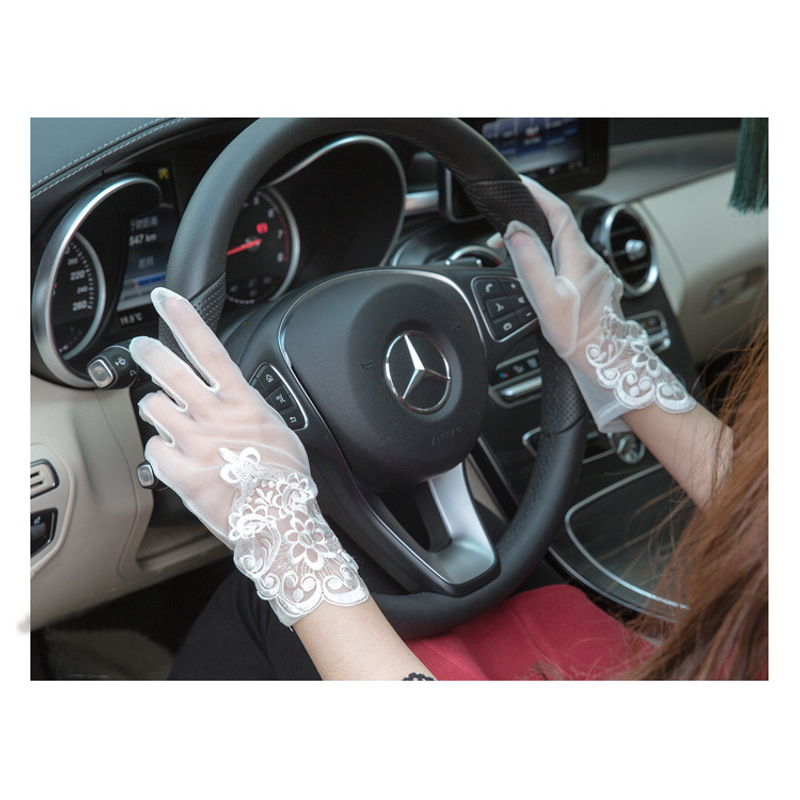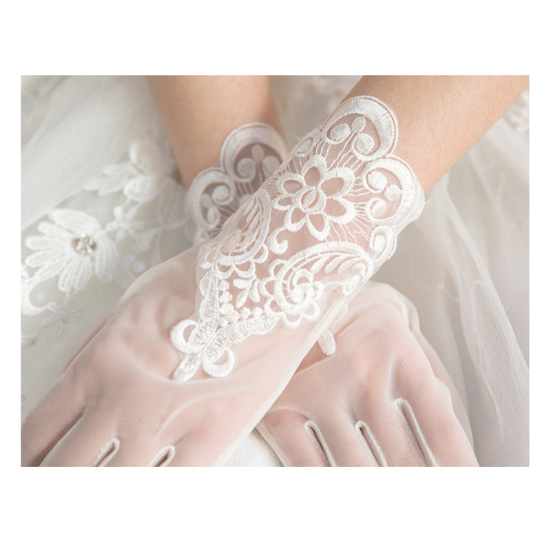 New Bride's Wedding Gloves Sunscreen Lace Hollowed Out Beige1