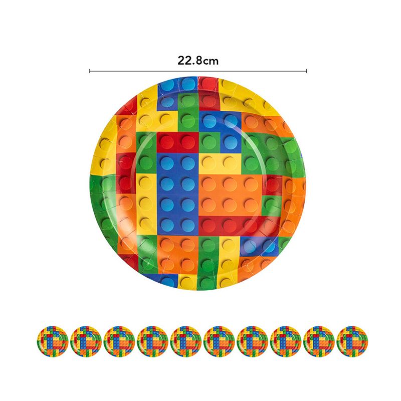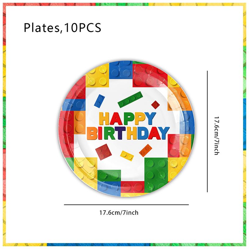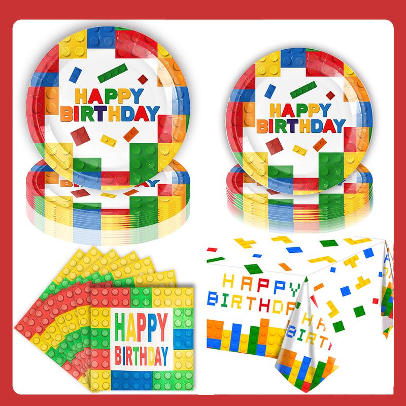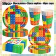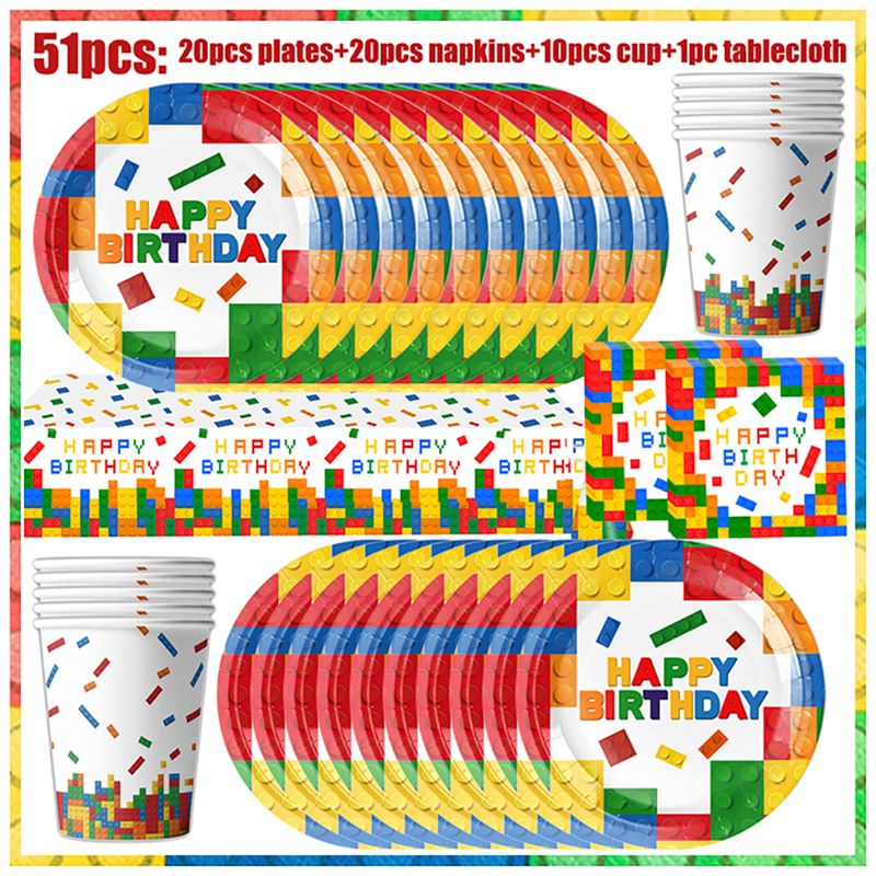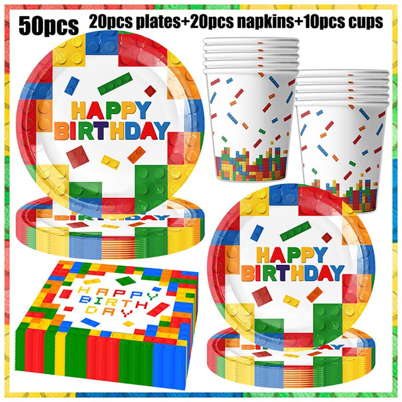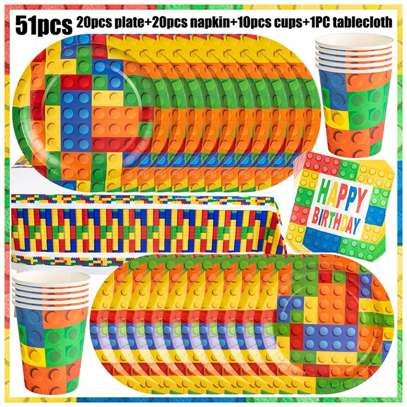 New Building Block Birthday Party Decoration Colorful Building Blocks Plates Cup Napkins Tableware Tablecloth Supplies Kids Boys