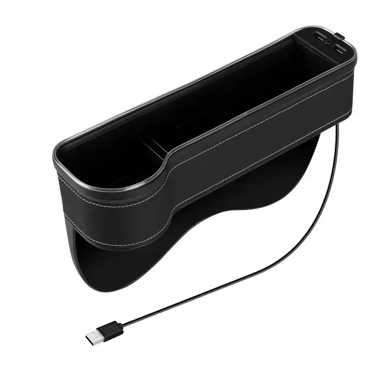 New Car Crevice Storage Box with 2 USB Charger Colorful LED Seat Gap Slit Pocket Seat Organizer Card Phone Bottle Cups Holder