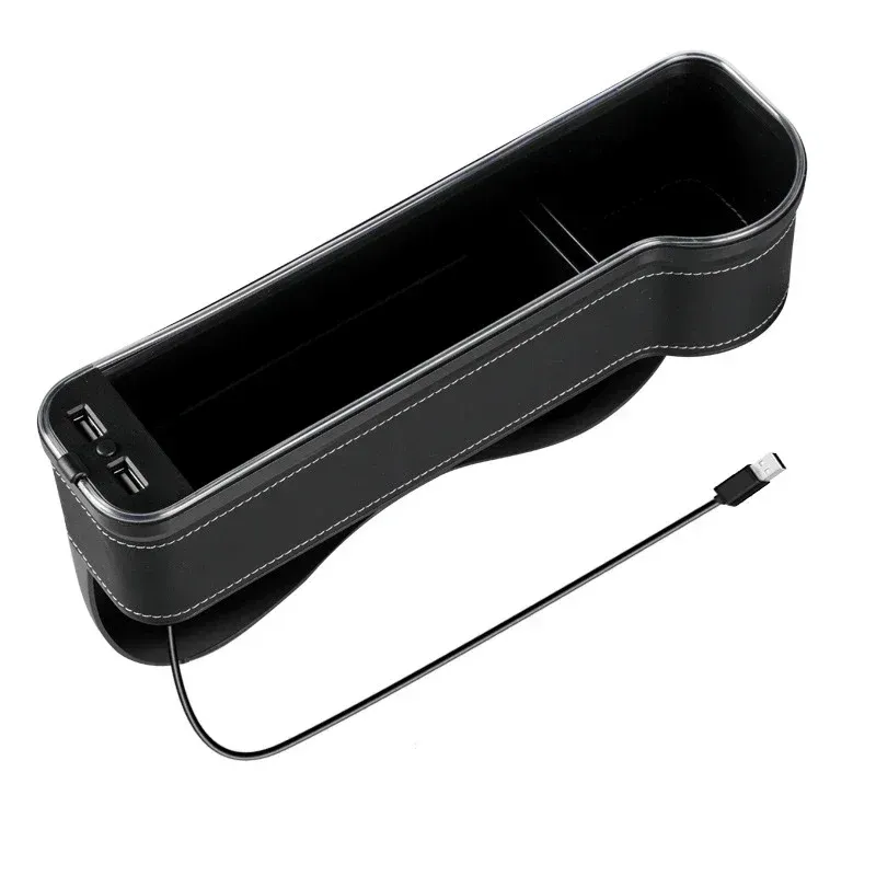 New Car Crevice Storage Box with 2 USB Charger Colorful LED Seat Gap Slit Pocket Seat Organizer Card Phone Bottle Cups Holder