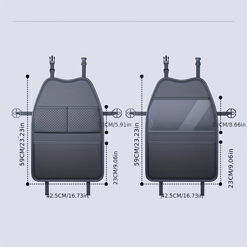 Car Seat Protection Cover Car Seat Kick-Proof Pad with Pockets Car Seat Back Storage Bag High-Grade PU Leather Material Easy to Clean Vehicle Hanging Bag Mobile Phone/File Storage Organizer Anti-Kick Pad Car Interior Decorative Accessories