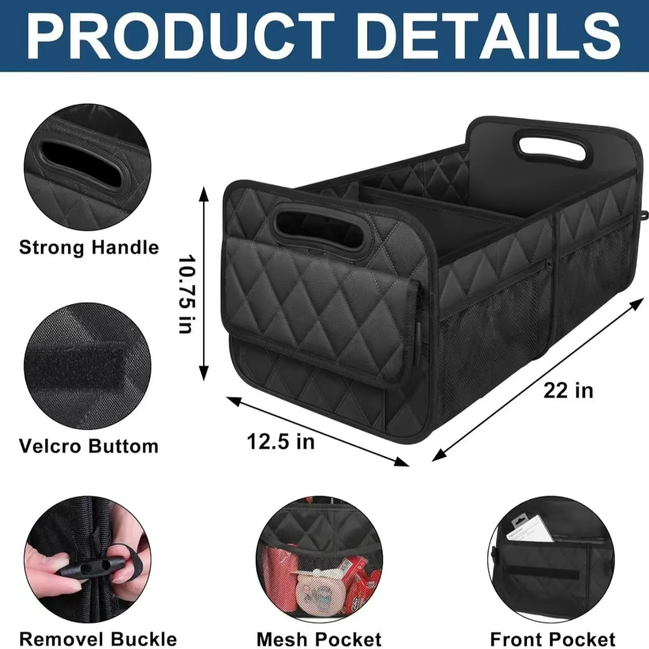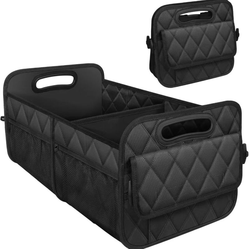 New Checkered Oxford Cloth Box Car Trunk Storage Box with Handheld Foldable Items Sorting Storage Box