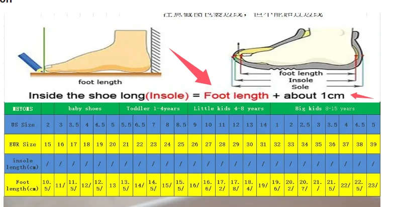 2.Please measure your kid's foot length as below. If her/his foot length is 15 cm, you can add 1 cm. That's to say,choose insole length 16 cm.For wide foot, Please choose one size bigger.