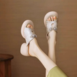 New Chinese Style Platform Mules for Women, Retro Jacquard Knot-Button Slide Sandals, Elevated Wedge Outdoor Slippers