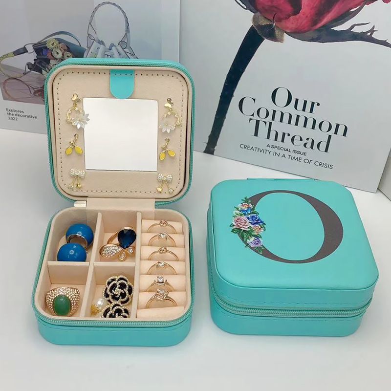 New Creative Letter Jewelry Box with Mirror Portable Travel Ring Necklace Earrings Stud Earrings Earring Blue Square Storage Box
