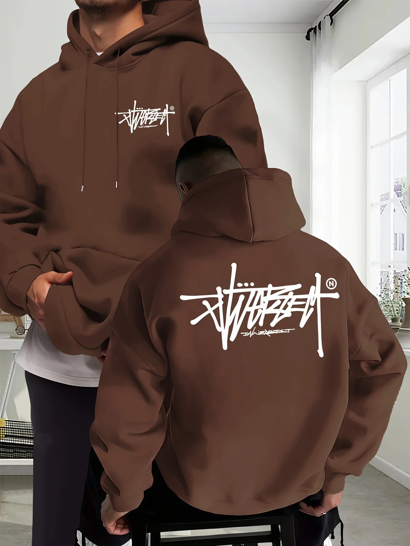 New creative printed men's hooded sport fitness and casual wear in autumn and winter providing protection for sports activitie