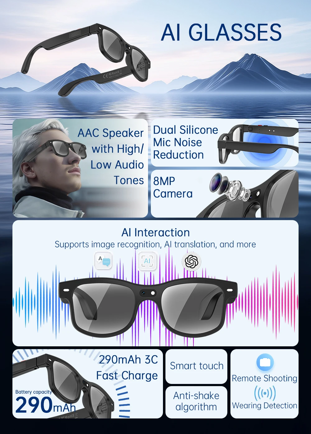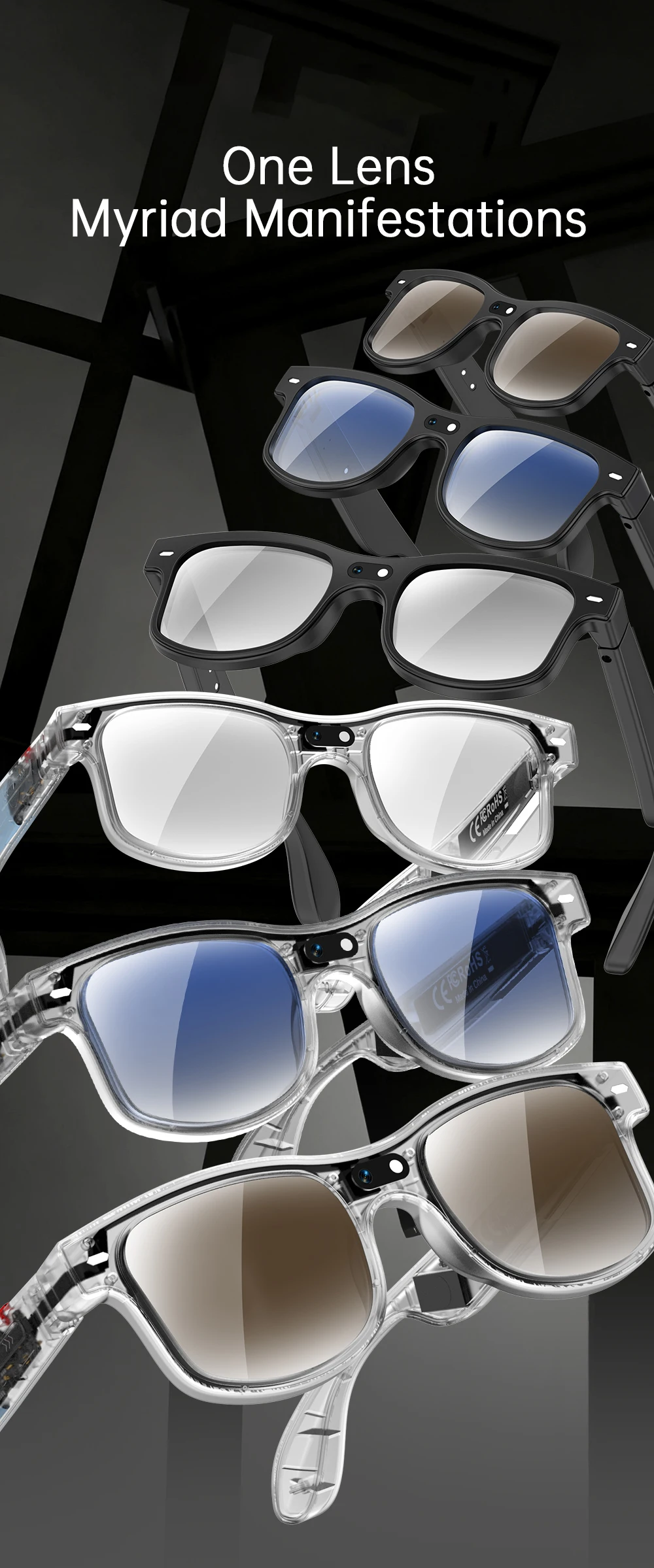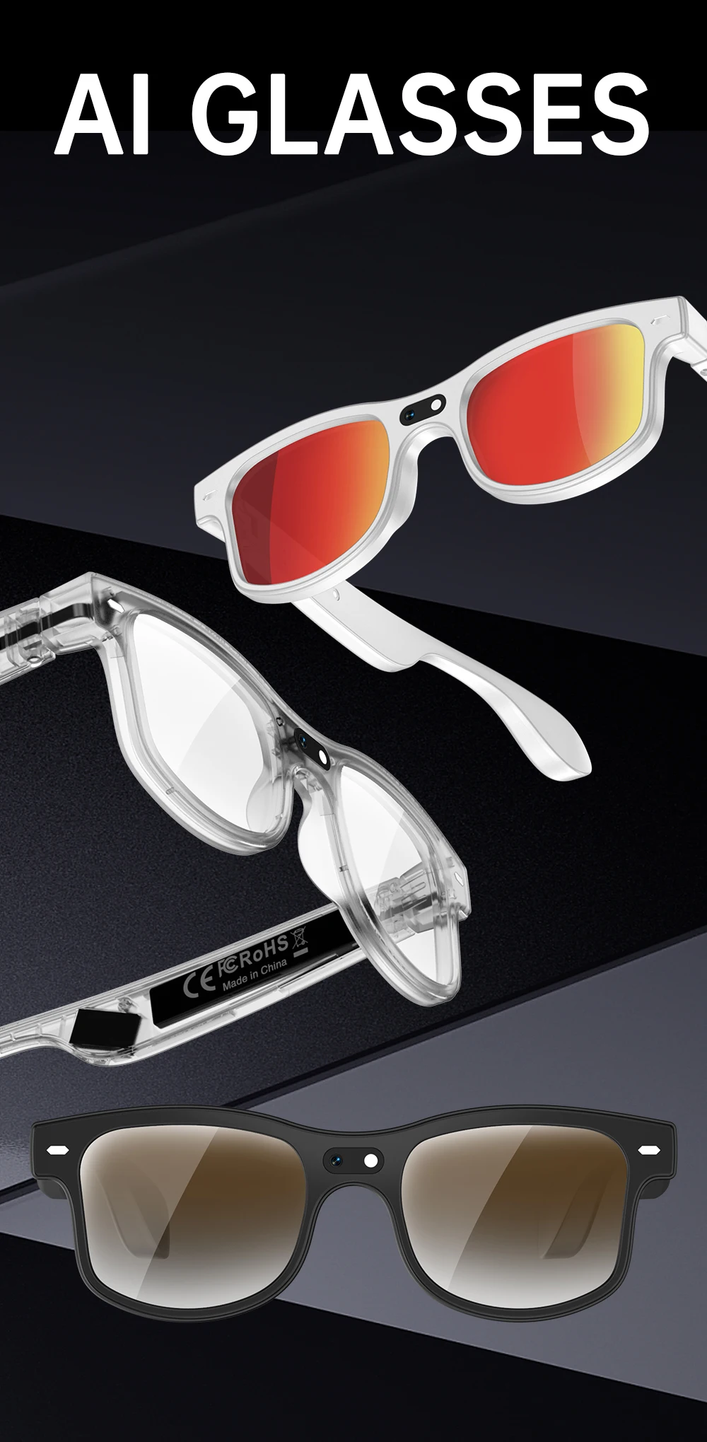 New Cycling Smart Glasses Outdoor Sunglasses Drive Blue Tooth Call Glasses 8MP Camera Real-Time Translation Video Recording