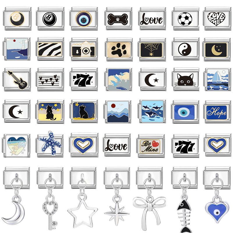 New Design Heart Star Eyes Cat Paws Butterfly Italian Charm Links Stainless Steel Fit 9mm Bracelet Jewelry DIY Making Gifts
