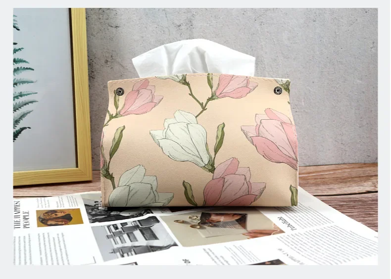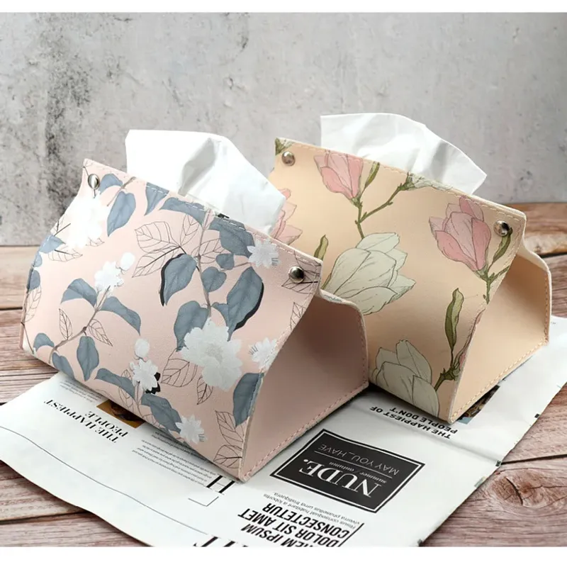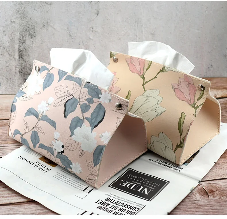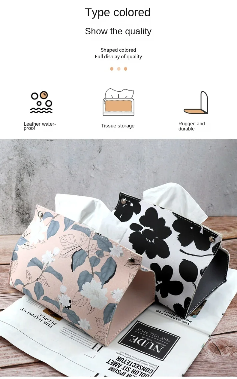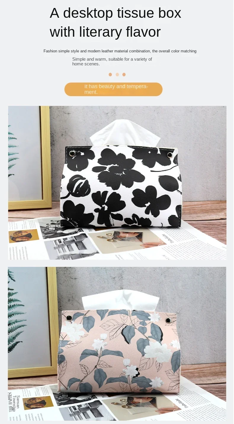 New Desktop PU Leather Tissue Box Living Room Home Creative Flower Paper Box Car Tissue Bag Face Towel Storage Box