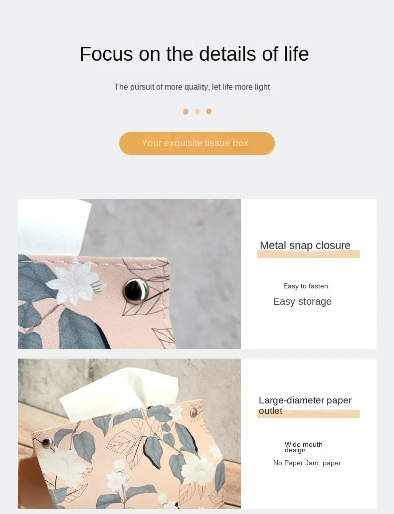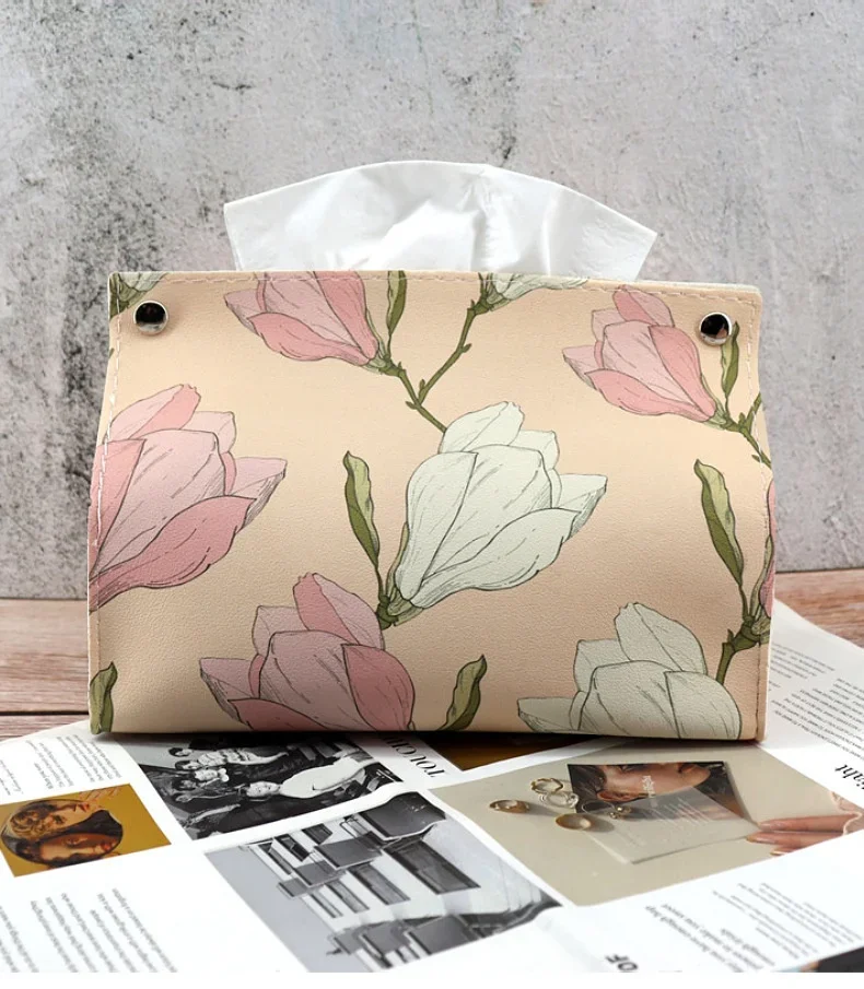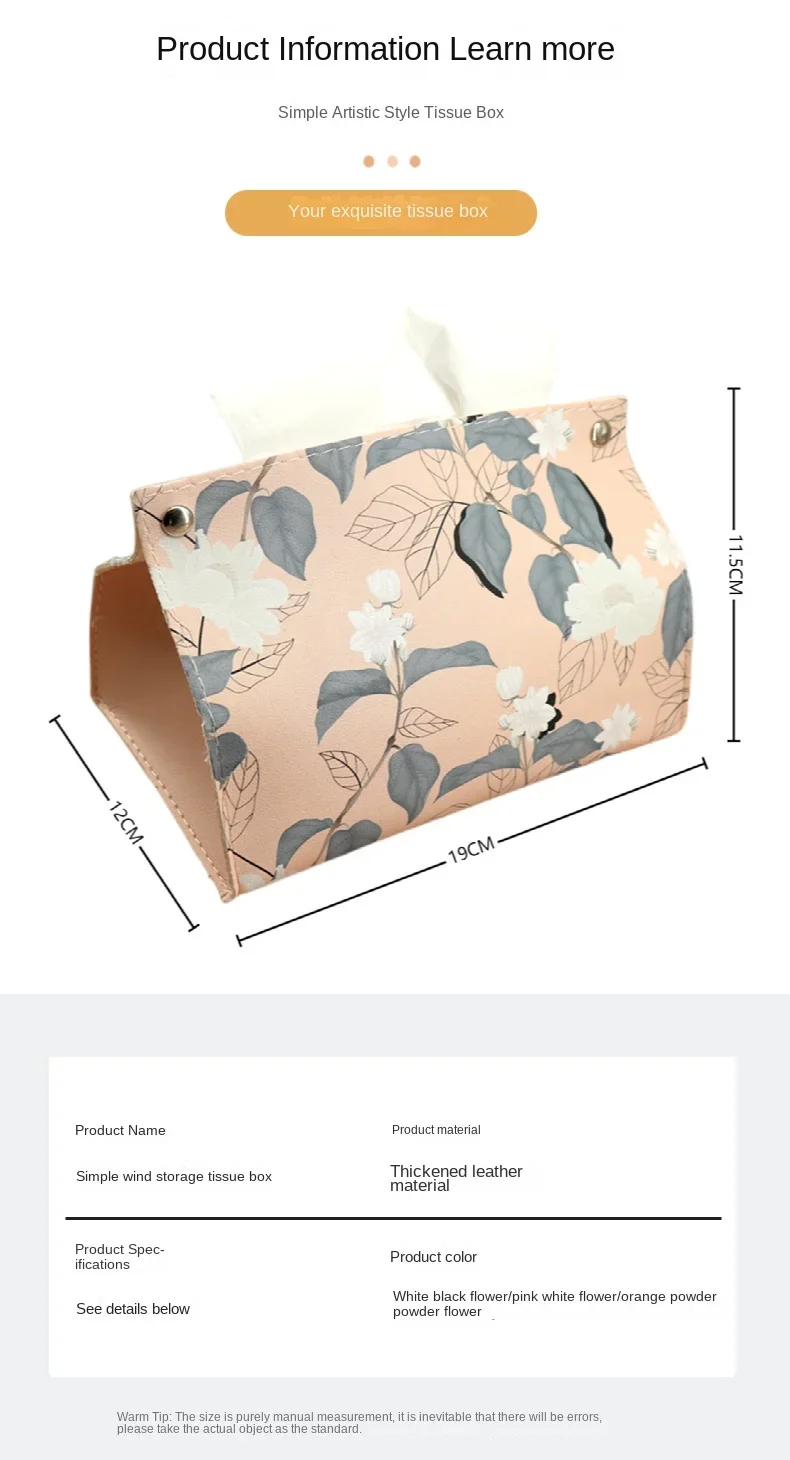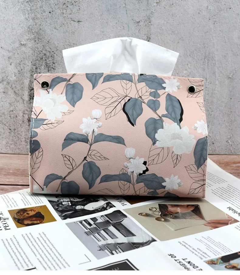 New Desktop PU Leather Tissue Box Living Room Home Creative Flower Paper Box Car Tissue Bag Face Towel Storage Box