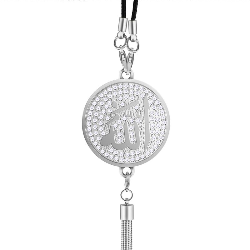New Diamond Metal Car Badge Rearview Mirror Pendant Arabic Muslim Islamic God Allah Emblem Auto Interior Hanging Ornaments Acces
