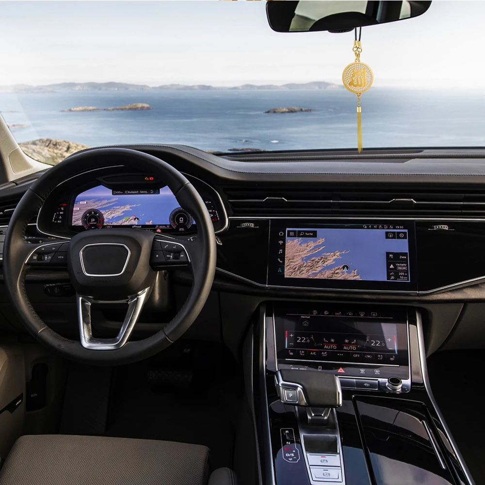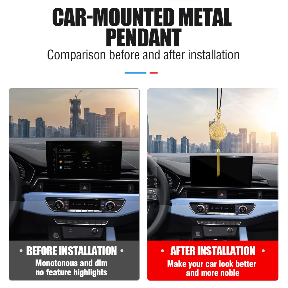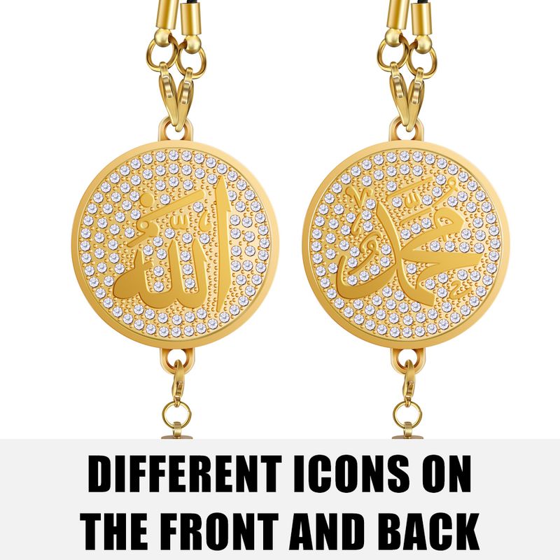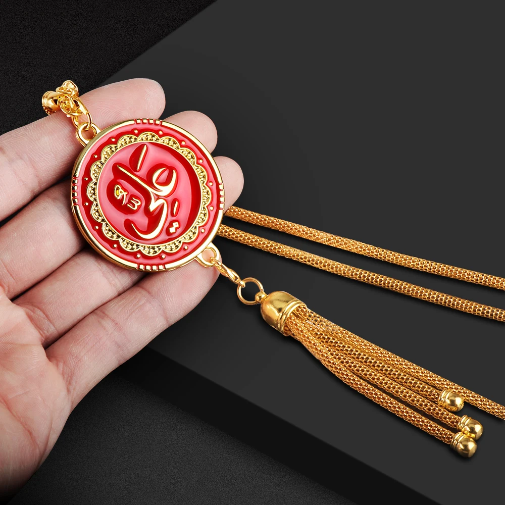 New Diamond Metal Car Badge Rearview Mirror Pendant Arabic Muslim Islamic God Allah Emblem Auto Interior Hanging Ornaments Acces