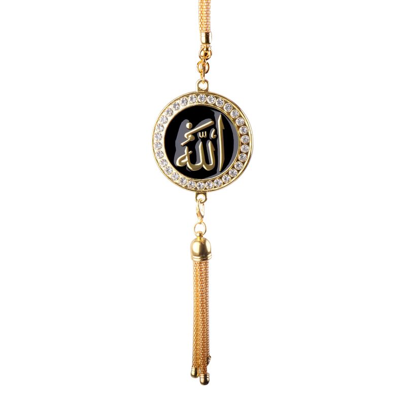New Diamond Metal Car Badge Rearview Mirror Pendant Arabic Muslim Islamic God Allah Emblem Auto Interior Hanging Ornaments Acces