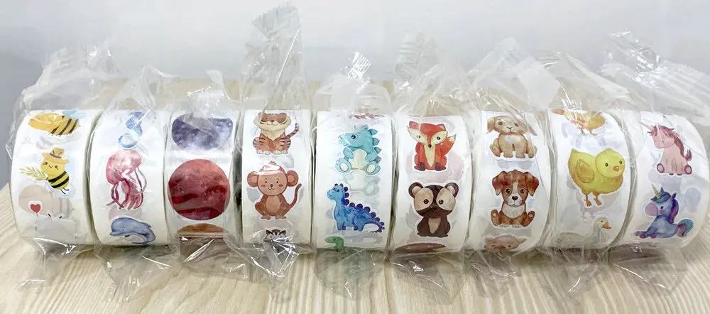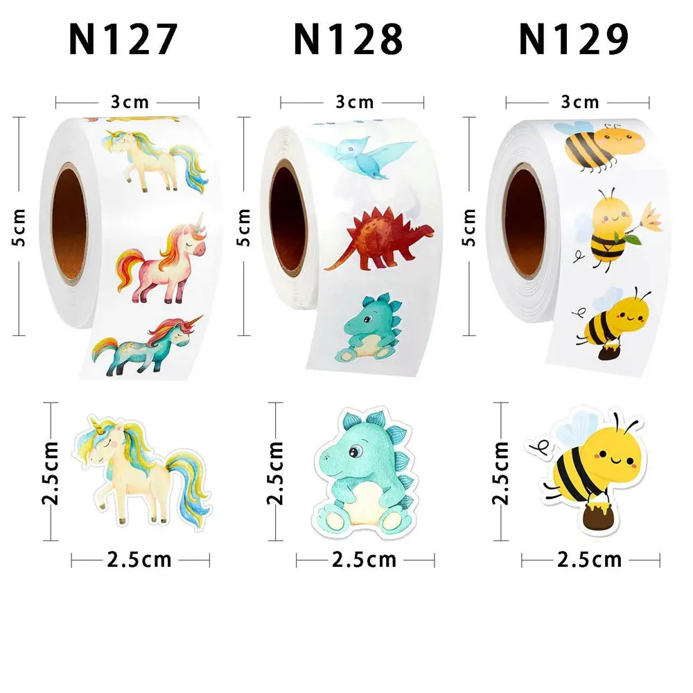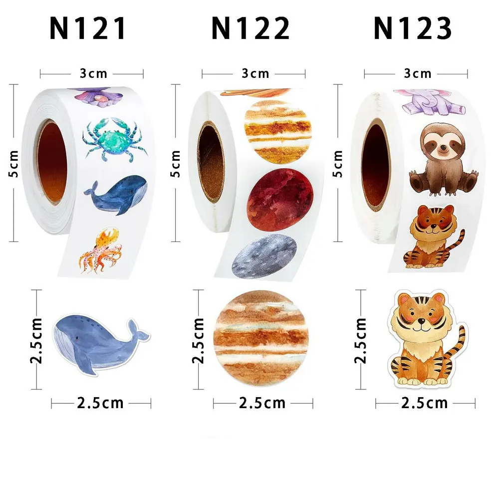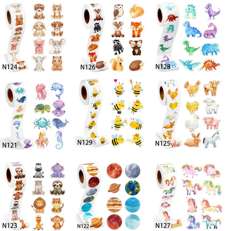 New Dinosaur cute Round Animal Cartoon Stickers Teachers and Kids Boys Girl Toy Designs Self-adhesive Reward sticker Label
