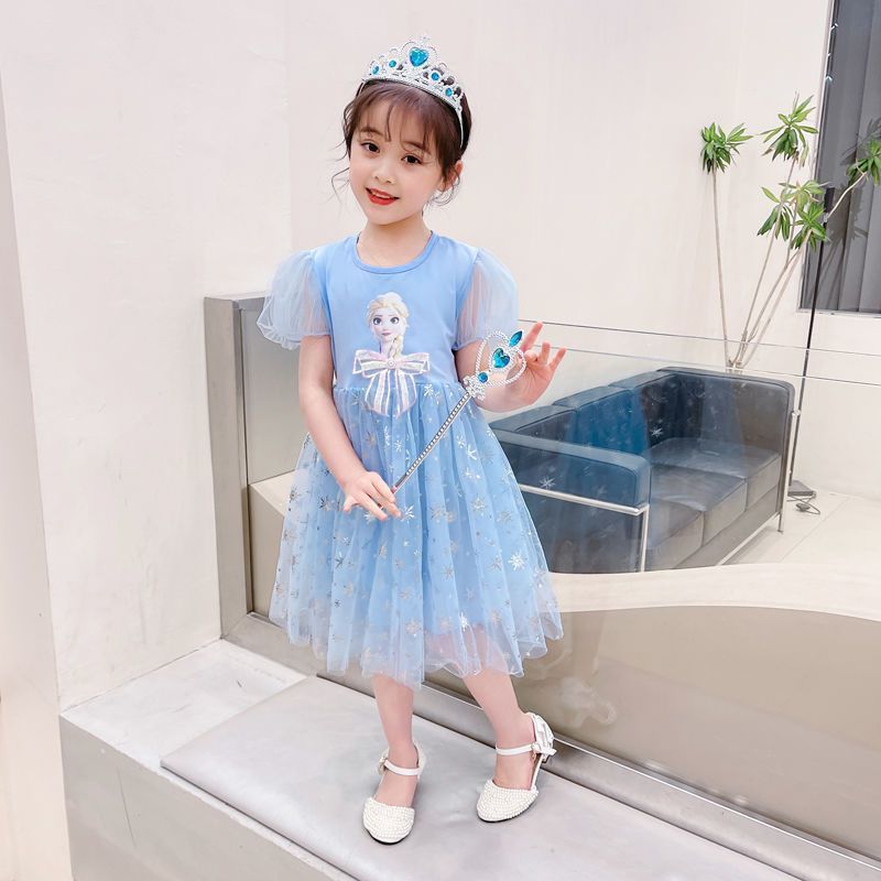 New Disney Girls DressShort Sleeve Kids Clothes Princess Dresses Frozen Elsa Party Baby Dresses for Children Clothing