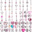 New DIY Sparkling Pink Serise Flower Dangle Butterfly Charm Heart Axolotl Bead Fit Original Silver European Bracelet JewelryGift