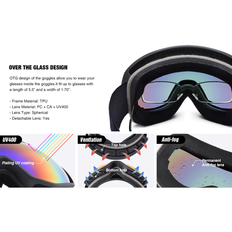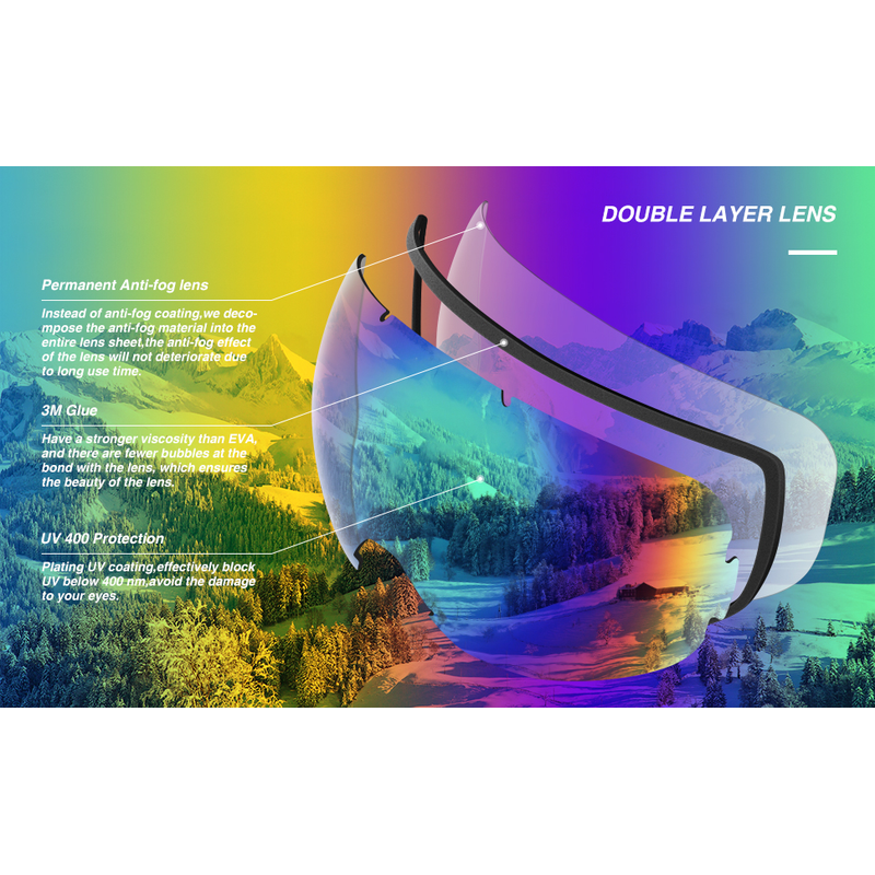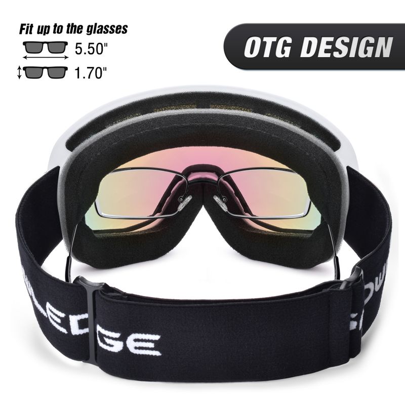 glossy white,1 PC dual pink lens without coating;2 laser logo on bottom right side: SNOWLEDGE