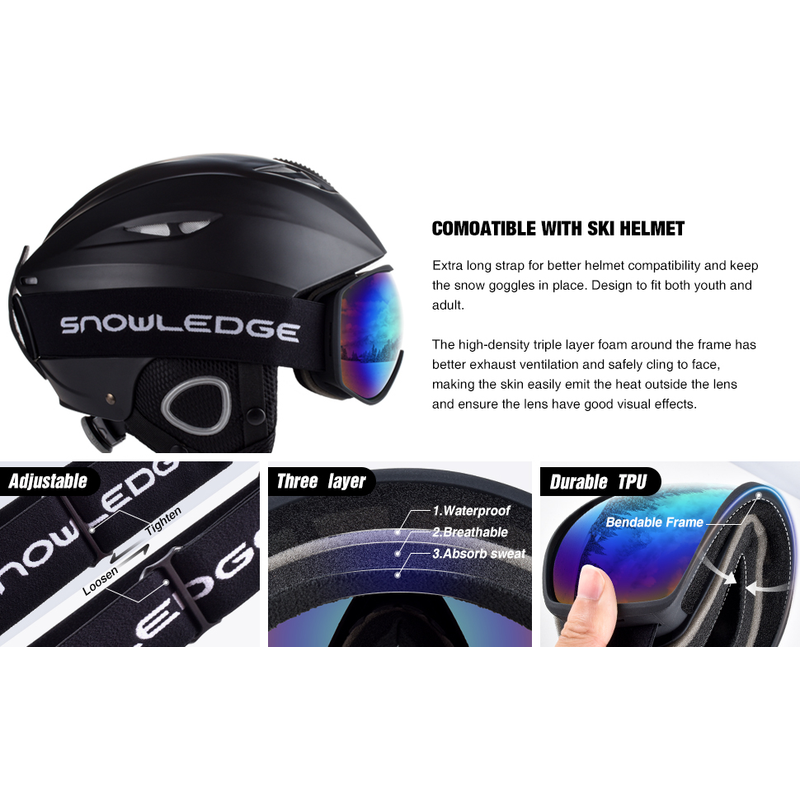 matt black,1 PC dual #3 grey lens without color coating;2 laser logo on bottom right side: SNOWLEDGE