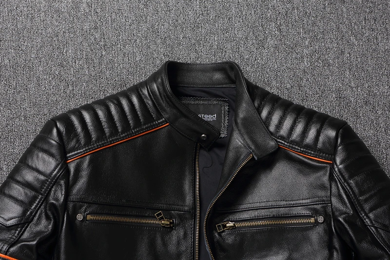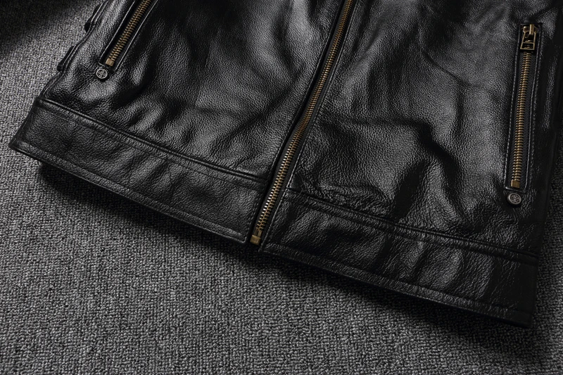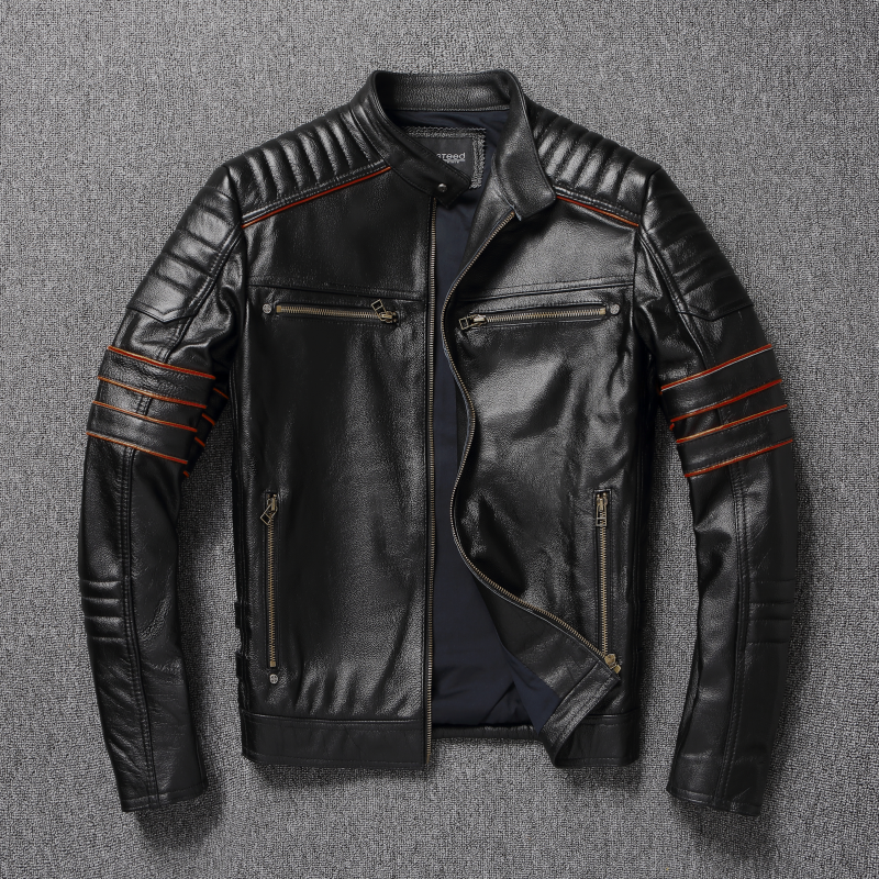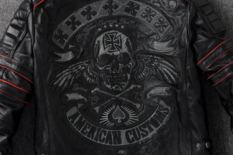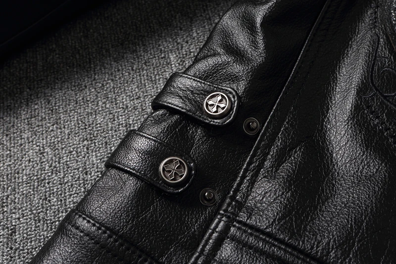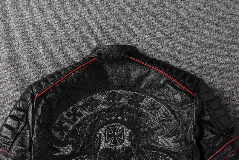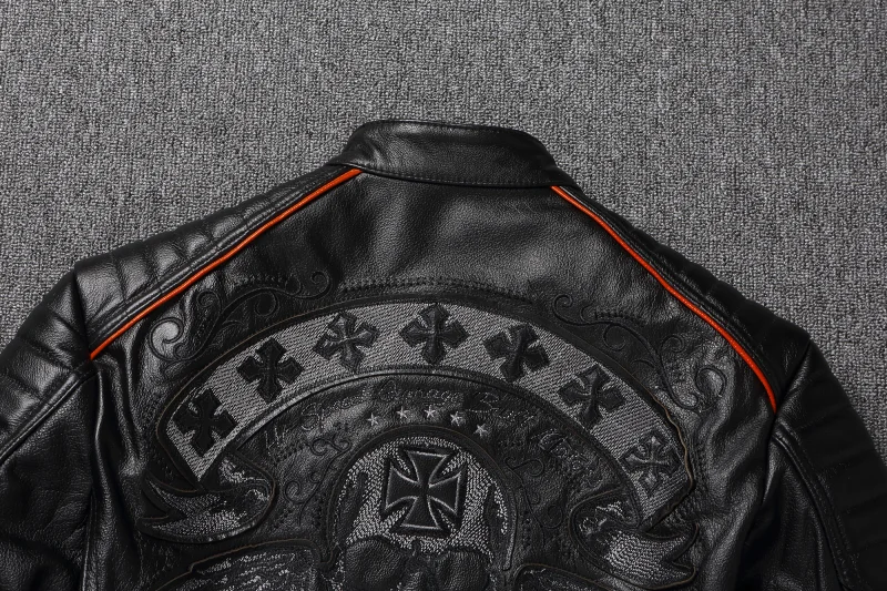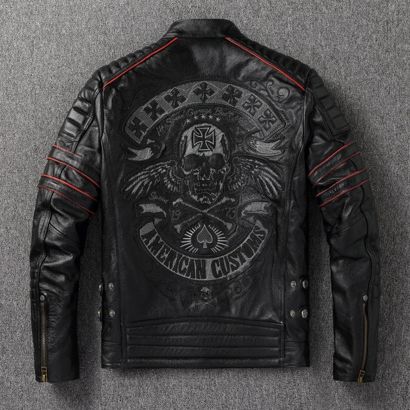 New Embroidery Skull Fashion Genuine Leather Jacket Men's Natural Cowhide Motorcycle Jacket Slim Moto Coat