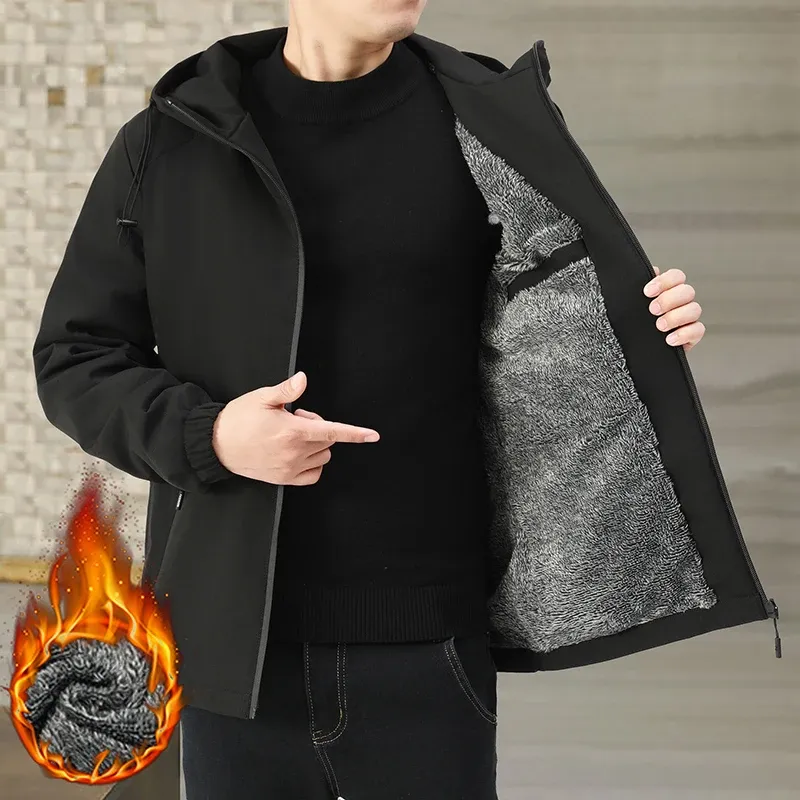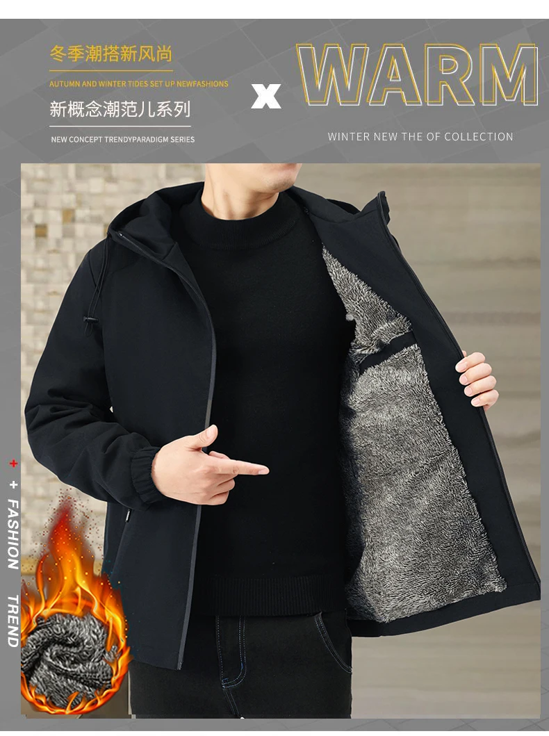 New Fashion Fleece Hooded Winter Jacket Men Thick Warm Mens Winter Coat Windproof Slim Bomber Parka Jackets Windbreaker Parkas