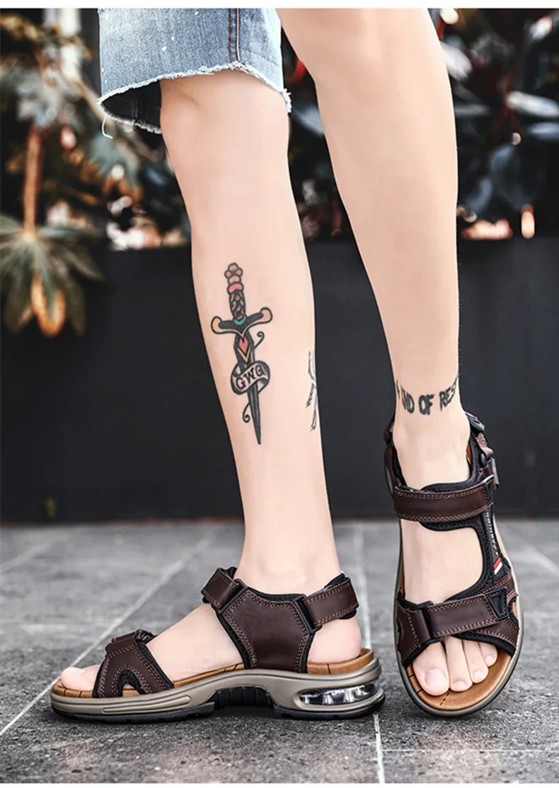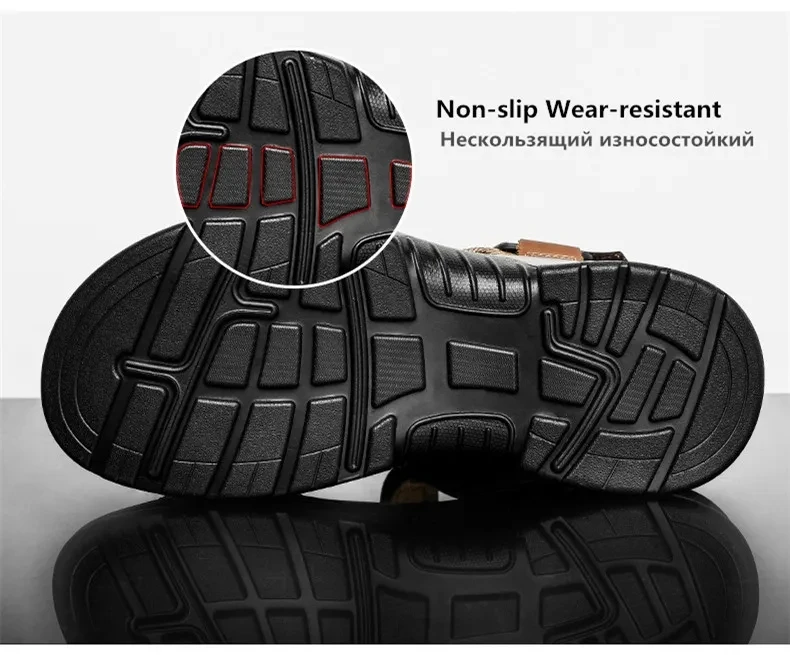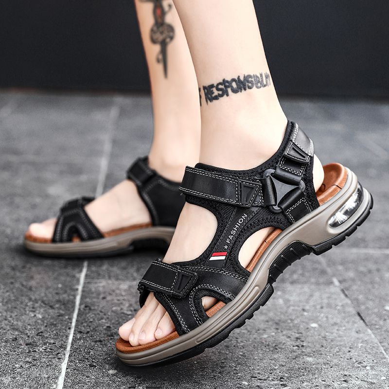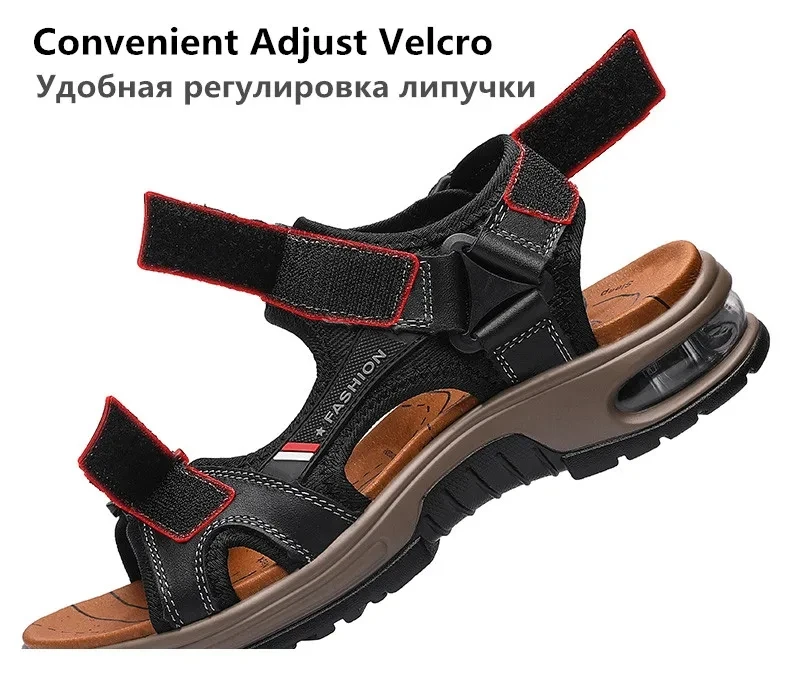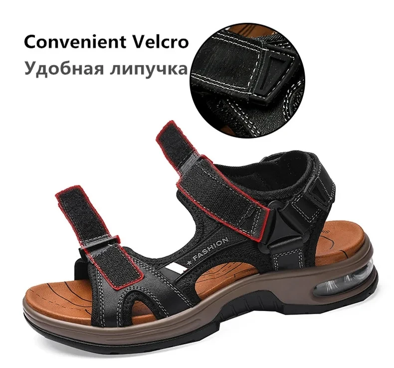 New Fashion Men's Sandals Summer Genuine Leather Sandals Outdoor Beach Sandals Non-slip Breathable Men's Wading Shoes Size 38-46