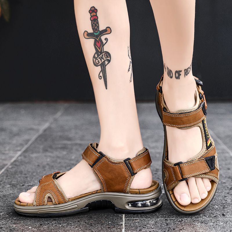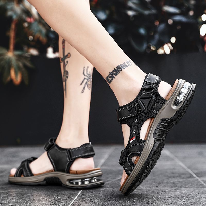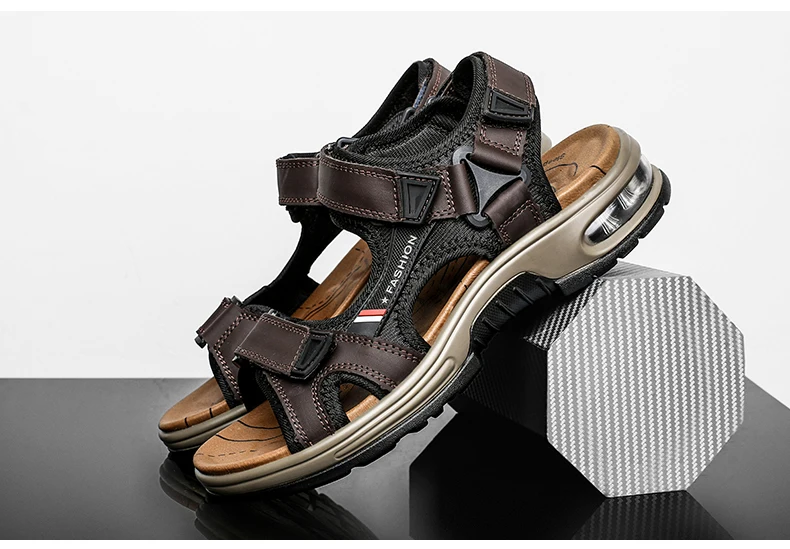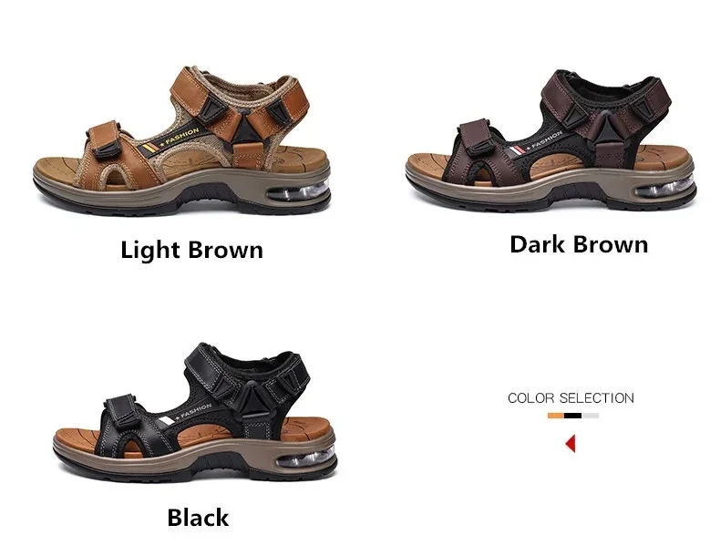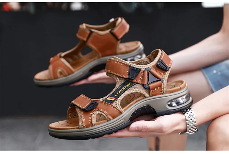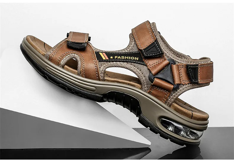 New Fashion Men's Sandals Summer Genuine Leather Sandals Outdoor Beach Sandals Non-slip Breathable Men's Wading Shoes Size 38-46