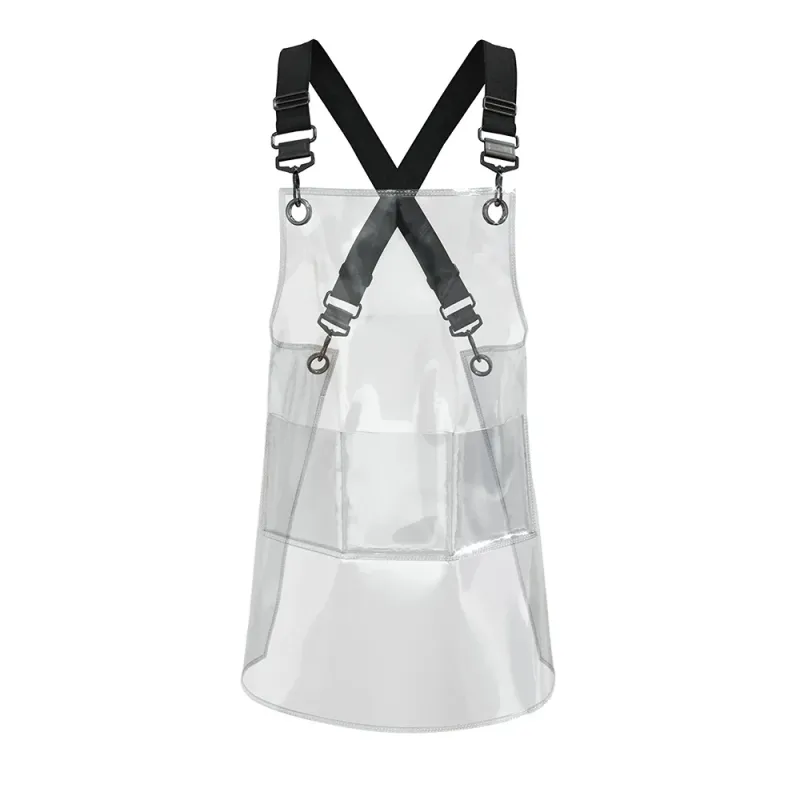 New Fashion Pink Clear Transparent PVC Kitchen Apron Restaurant TPU Thick Hairdresser Cafe Waterproof Nail Salon 3 Pocket Apron