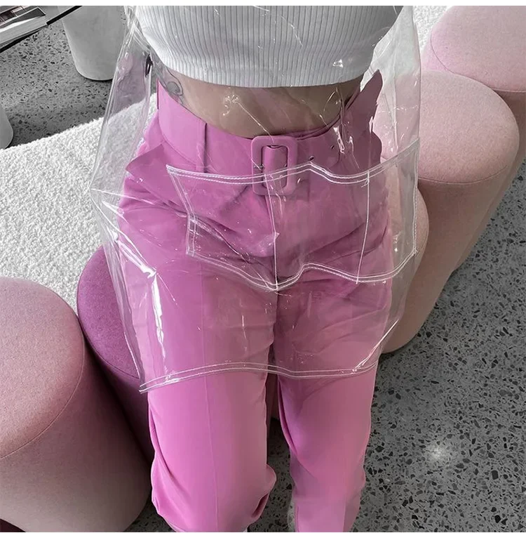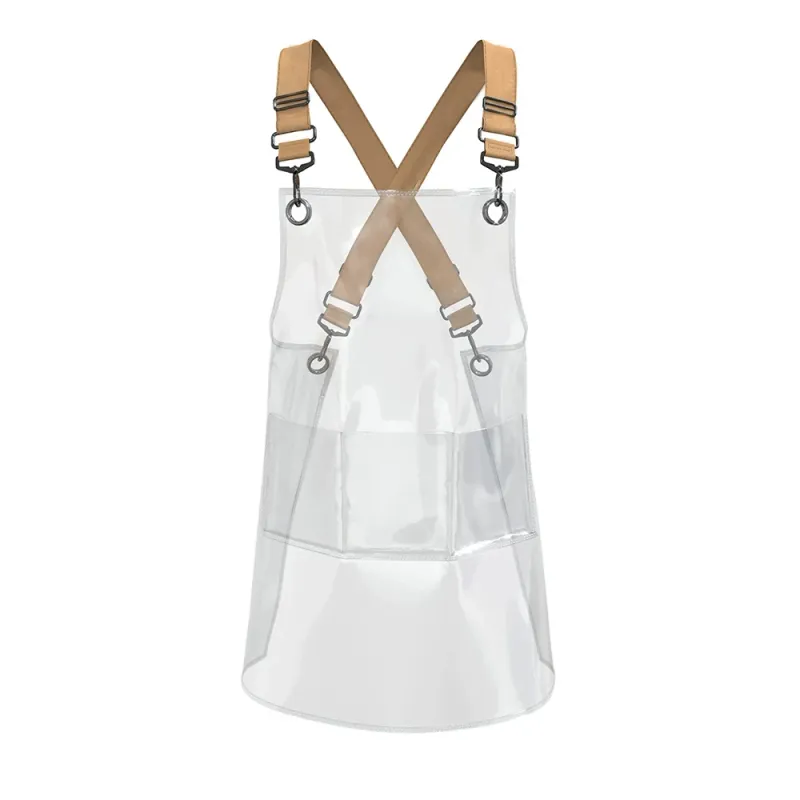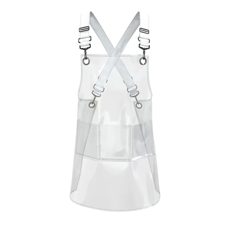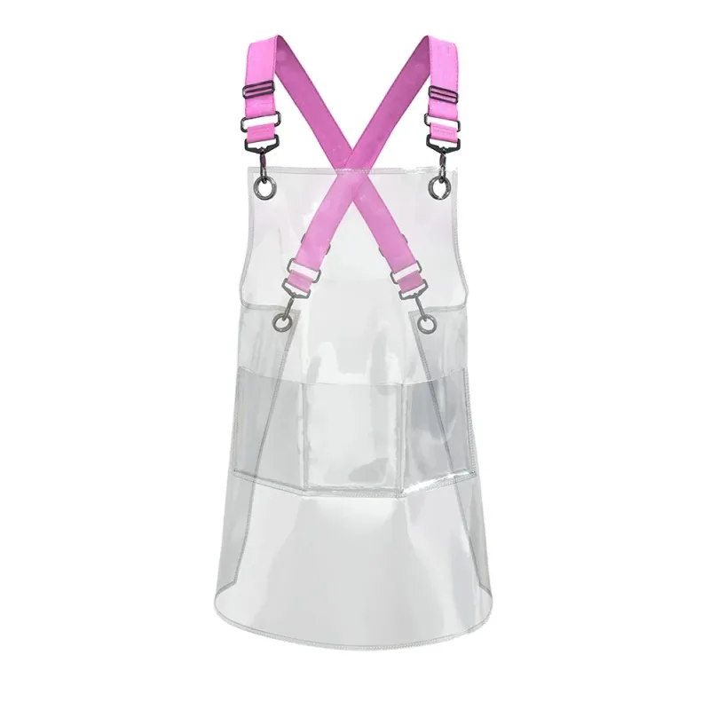 New Fashion Pink Clear Transparent PVC Kitchen Apron Restaurant TPU Thick Hairdresser Cafe Waterproof Nail Salon 3 Pocket Apron