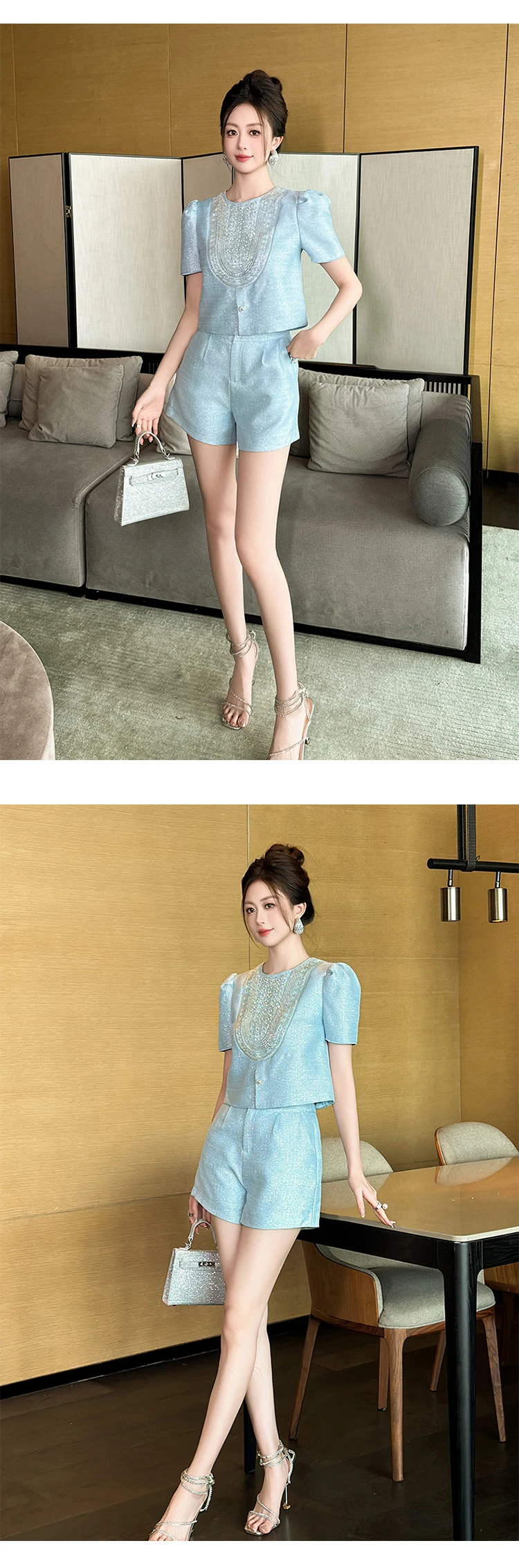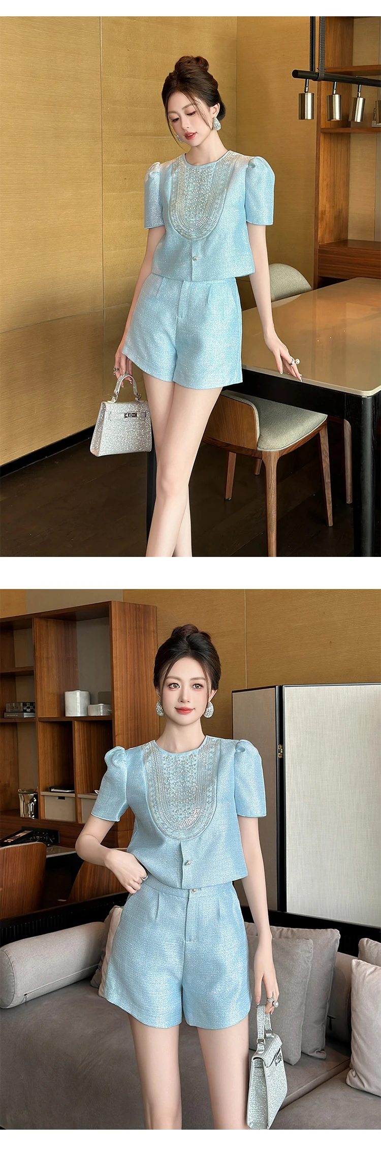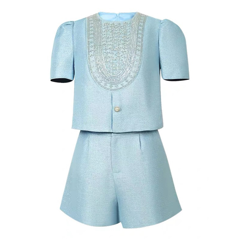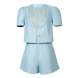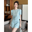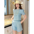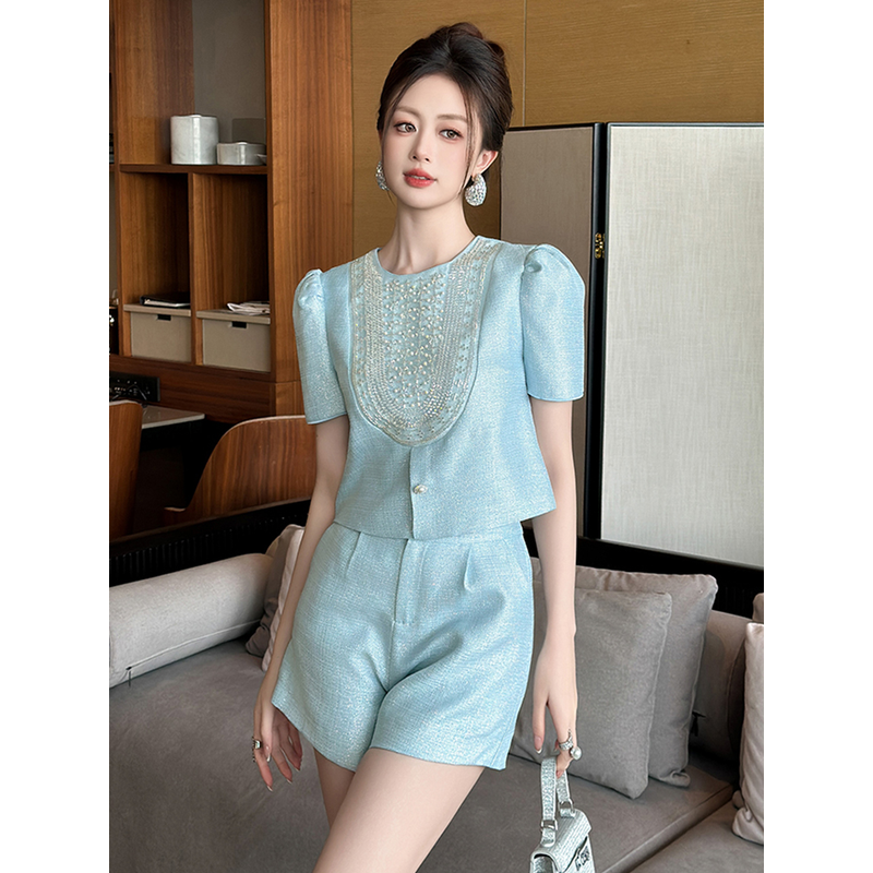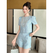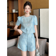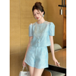 New Fashion Summer Casual Sweet 2 Piece Outfit Women Clothes Puff Sleeve Short Tops Shirt Blouse And High Waist Shorts Mujer Set