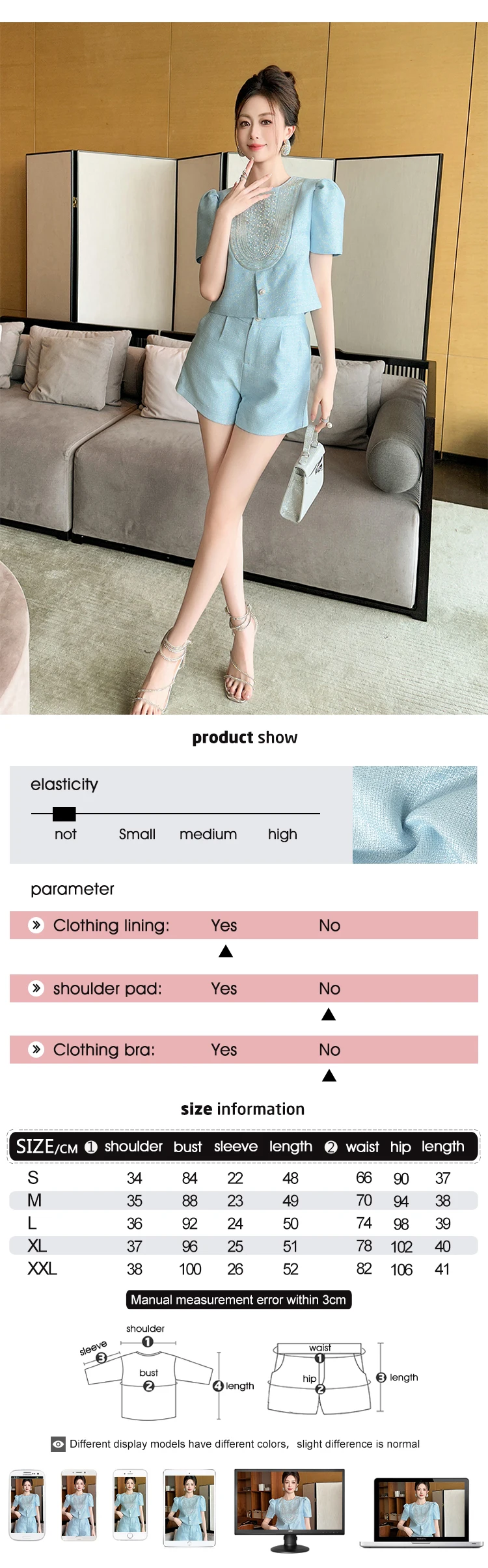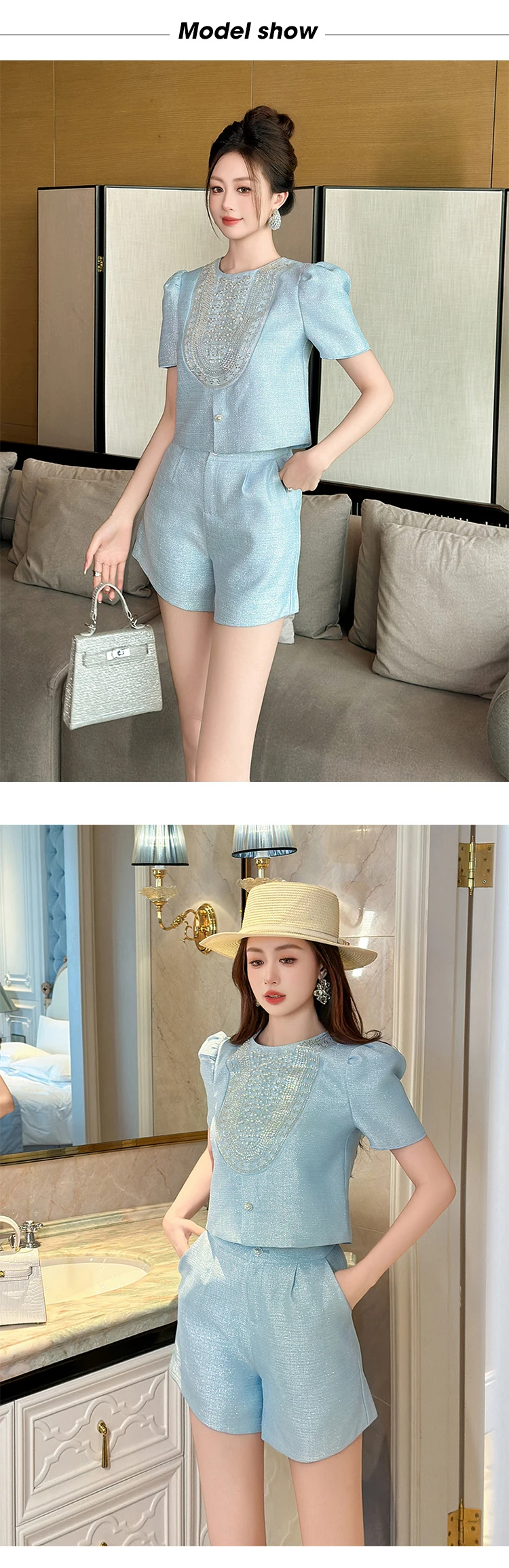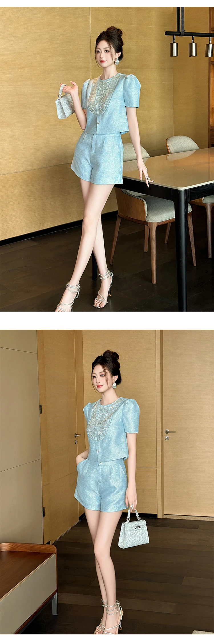 New Fashion Summer Casual Sweet 2 Piece Outfit Women Clothes Puff Sleeve Short Tops Shirt Blouse And High Waist Shorts Mujer Set