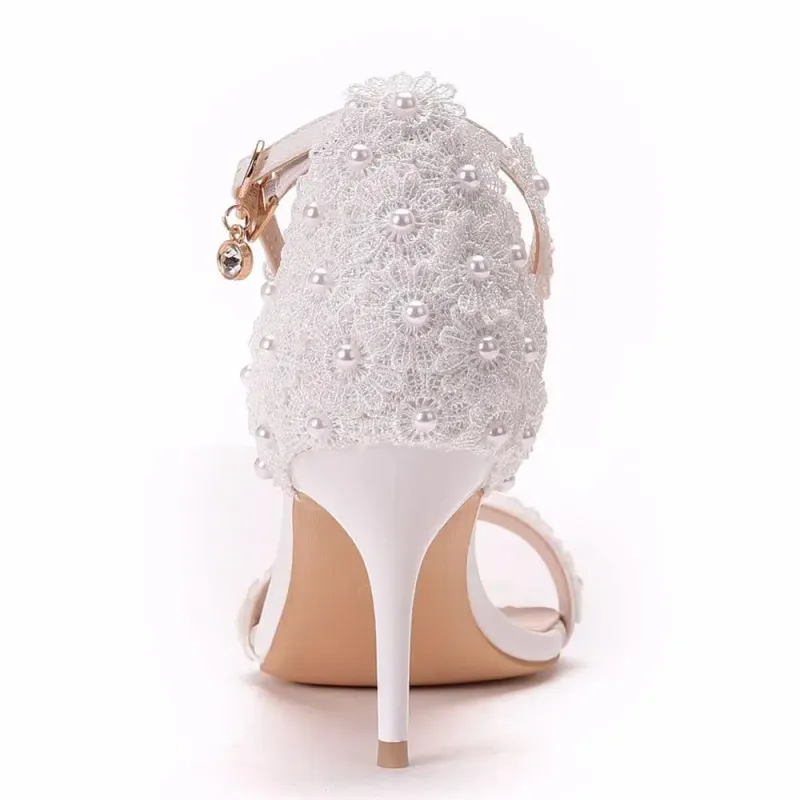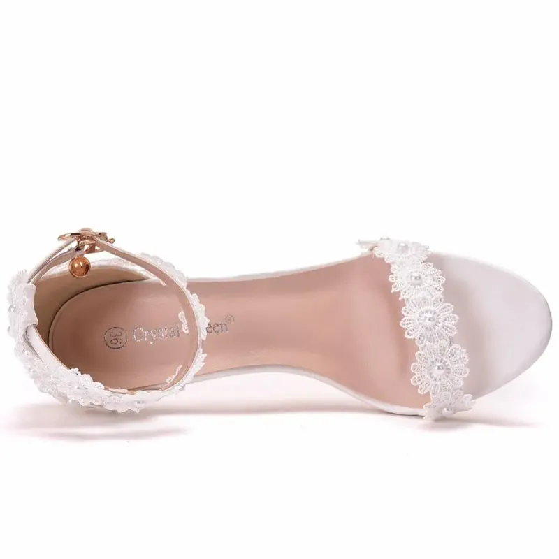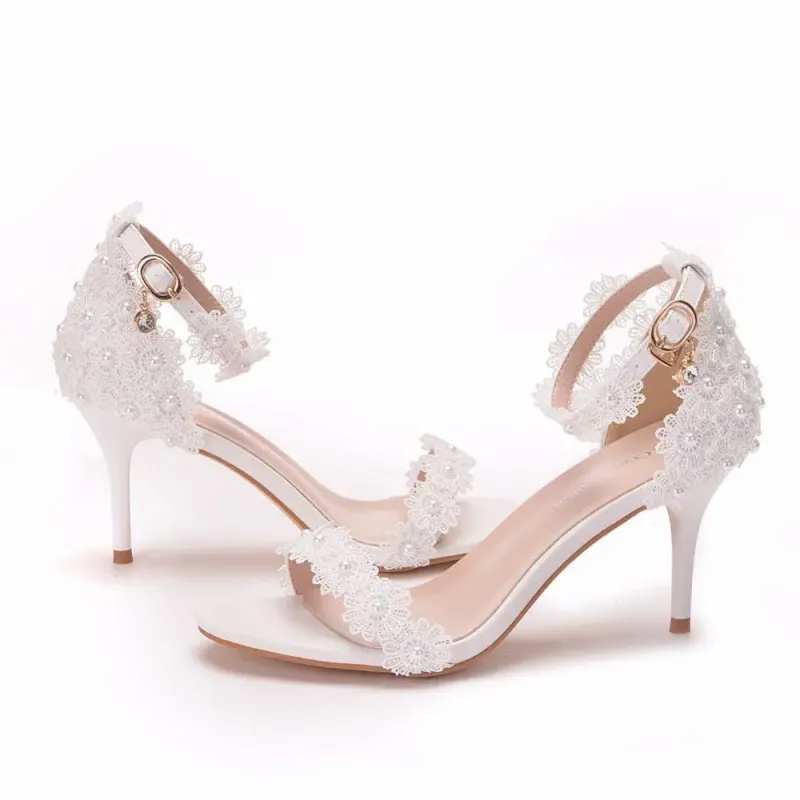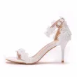 New Fish Mouth Platform Thin High Heels White Lace Wedding Heel Shoes Bride Dress Pumps Pearl Summer Woman White Sandals 42 43