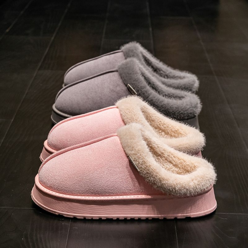 New Fluffy Men's Slippers Winter with Thick Sole for Indoor Anti-Slip and Warmth at Home with Fur Lining for Couples