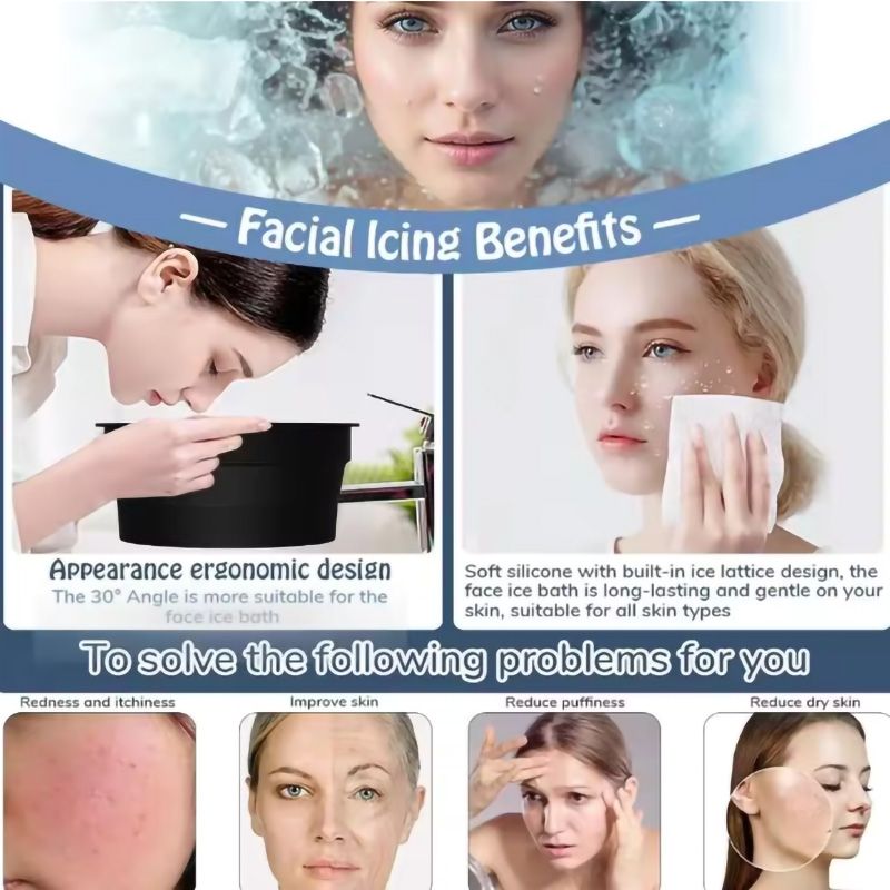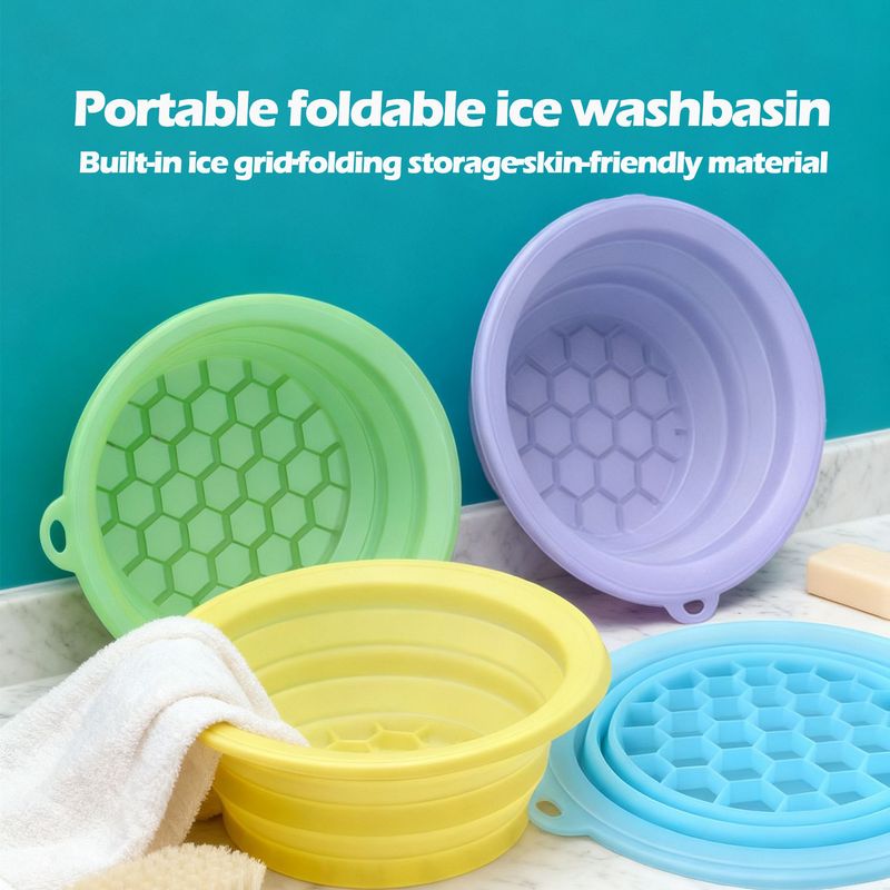 New foldable face wash ice bathtub silicone built-in ice tray portable ice basin skin care washbasin for women and girls