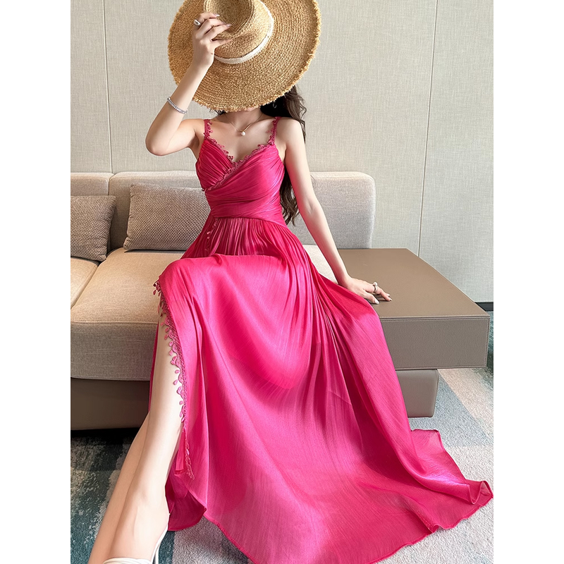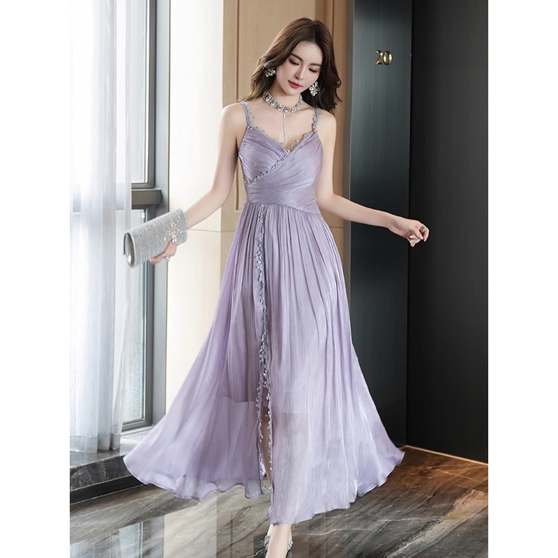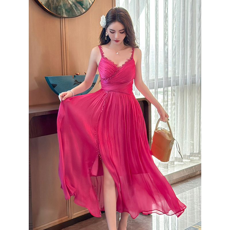 New French Romance Sweet Beach Gown Evening Dress Women Clothes Mujer Elegant Sexy Sling Long Robe Party Birthday Vestido Fiesta