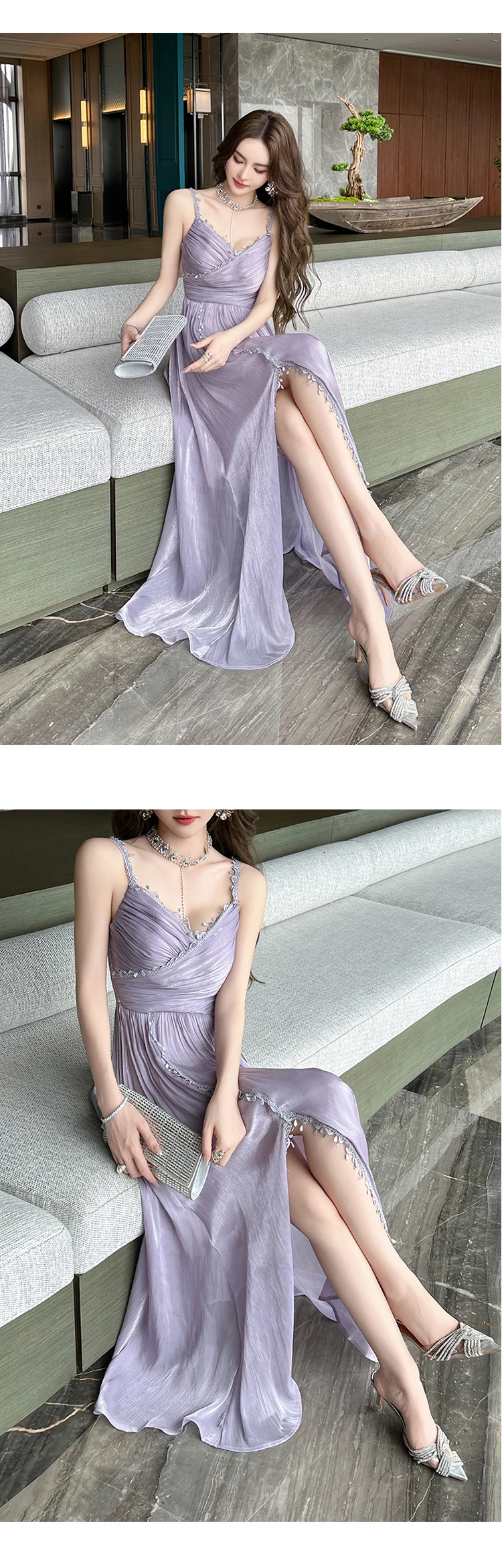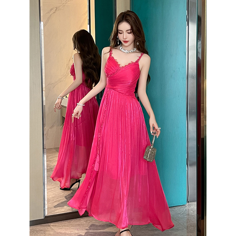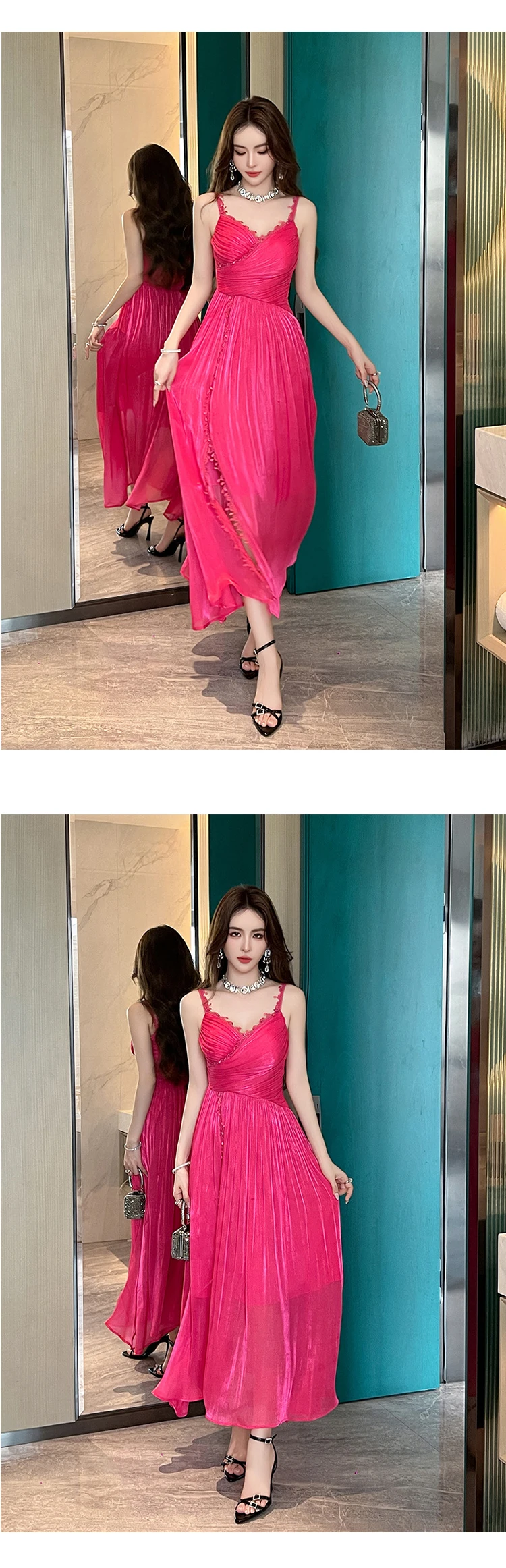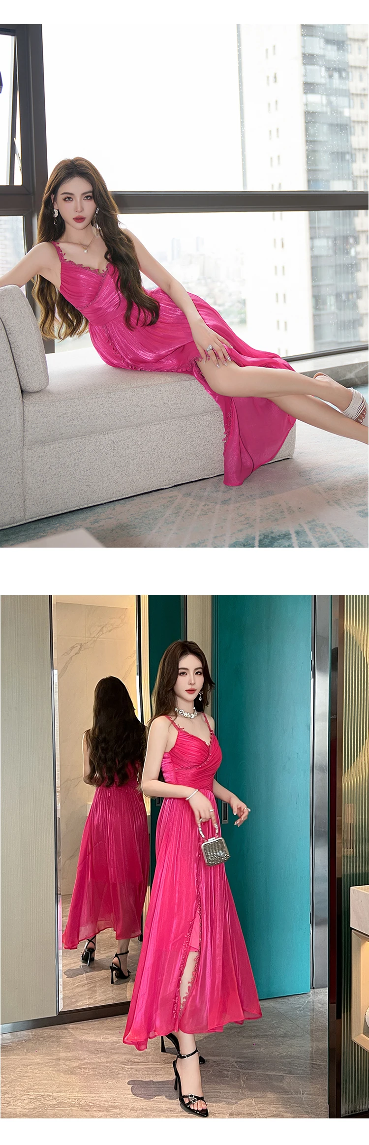 New French Romance Sweet Beach Gown Evening Dress Women Clothes Mujer Elegant Sexy Sling Long Robe Party Birthday Vestido Fiesta