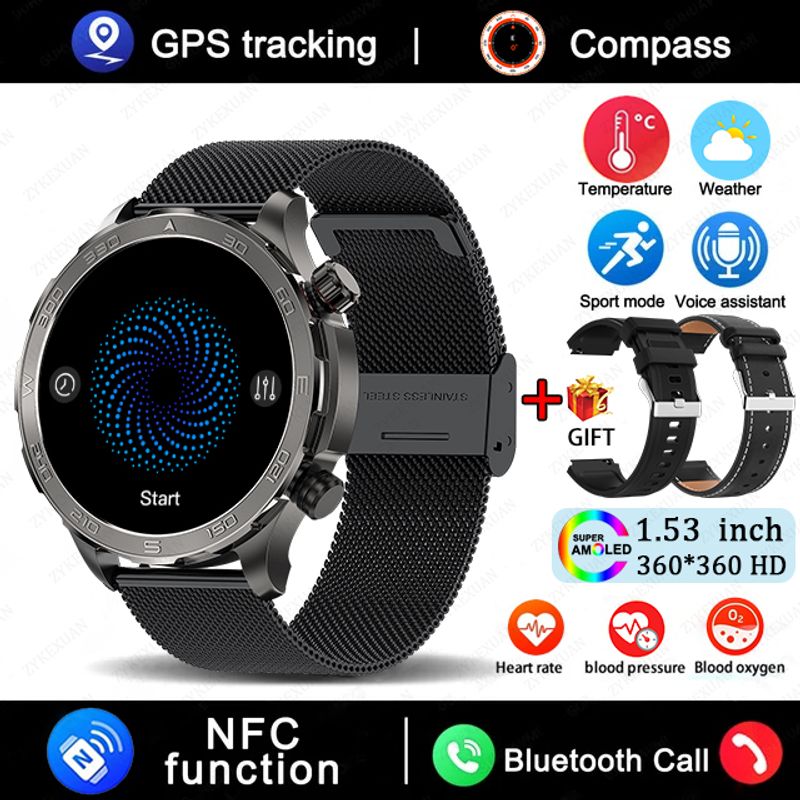 Dear customer, thank you very much for your support, this is a multi-functional smart watch! This product has many very useful features! For example, with the NFC function, you can open the door through your watch! Bluetooth calling function, you can make calls directly after connecting to the Bluetooth of your mobile phone! AI voice assistant function, realize watch functions through voice! The sports mode function can monitor your exercise time, distance, steps, calorie consumption, heart rate changes, etc. in real time! There are also some medical auxiliary functions to monitor body temperature, sleep, blood pressure, blood oxygen, and heart rate, keeping an eye on your health at all times! These are very useful features!
