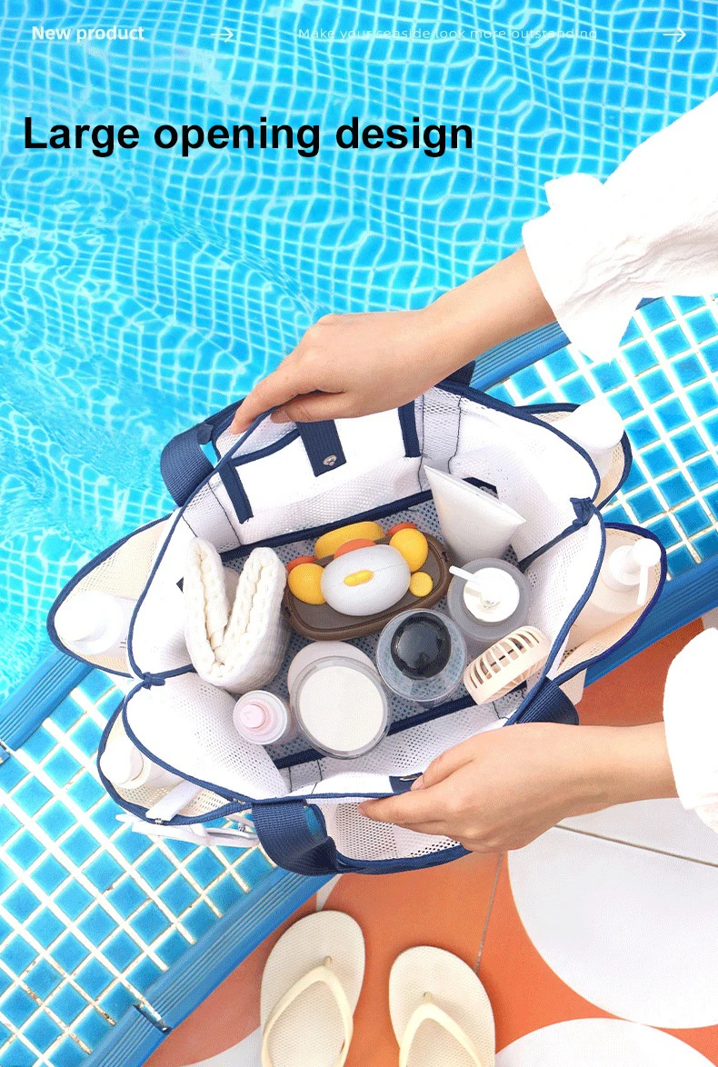 Large Capacity:This transparent mesh beach bag offers ample storage space, perfect for carrying all your beach essentials.