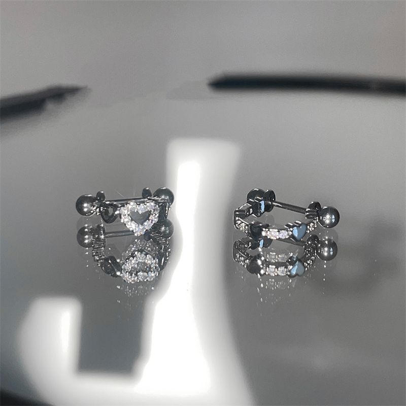 New Hollow Out Love 316L Stainless Steel Annular Ear Bone Nail Fashion Delicate Silver Color Earring for Women Y2K Punk Jewelry