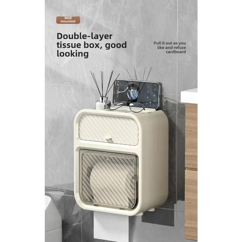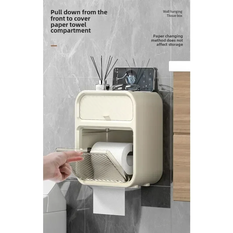 New Toilet toilet carton Wall-mounted tissue box No punching Waterproof toilet paper Roll paper rack