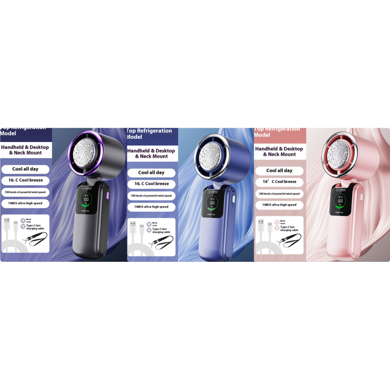 New Ice Pack High-Speed Handheld Eletirc Fan Speed Adjustable Folding Mini Fan Portable Outdoor Hanging Neck Small Fan Set