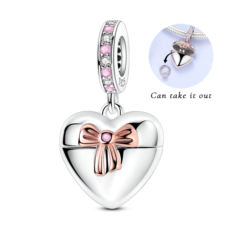 New IN 925 Sterling Silver Can Be Opened Heart Bow Pendant Charms Beads Jewellery Fit 925 Original Bracelet For Women DIY Gift