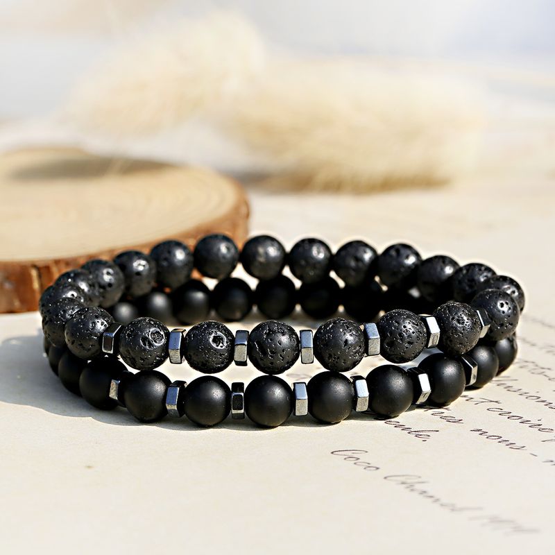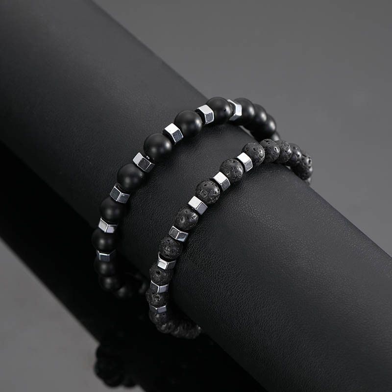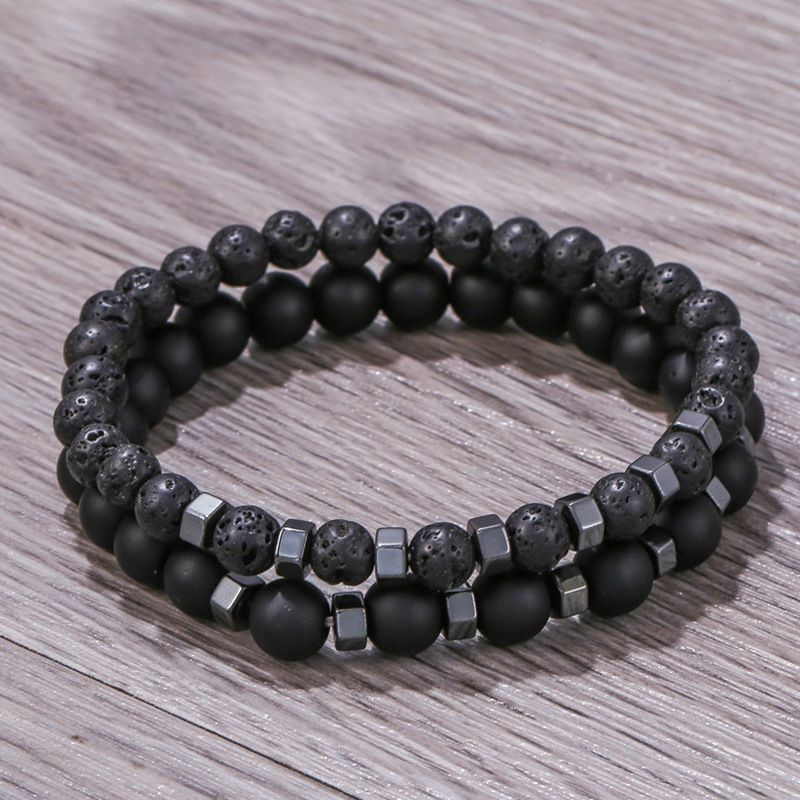 New In Frosted Black Bead Volcanic Stone Men’s Bracelet Set Double Layer Nature Stone Beaded Bracelets Gifts