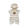 New In Summer Kids Baby Girls Boys Short Sleeve Waffle Patch Bear Infant Newborn Jumpsuits Cotton Romper Gift Hat with Ear
