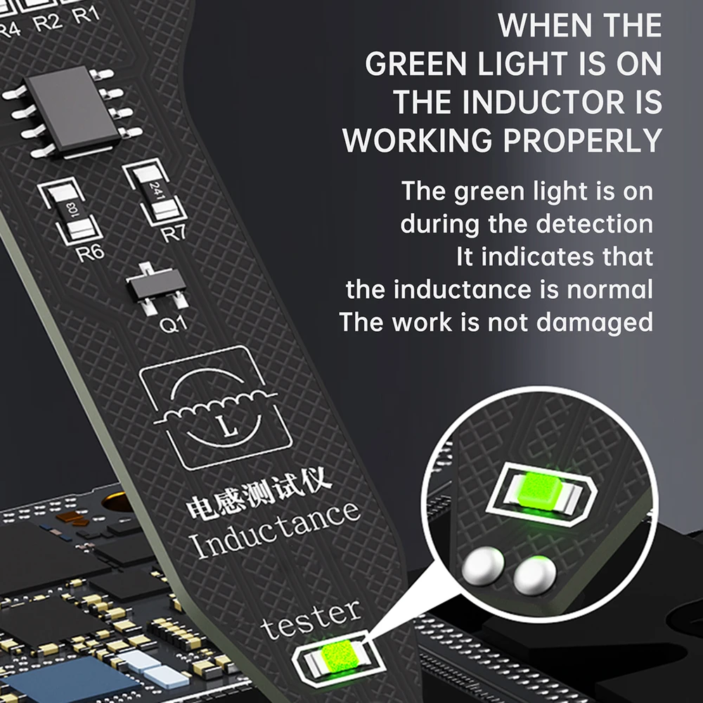 Operating Indicator: Green light illuminates during testing, indicating normal inductor function without damage