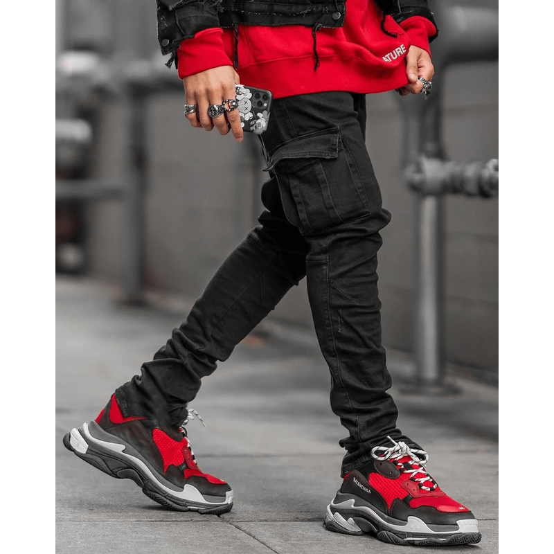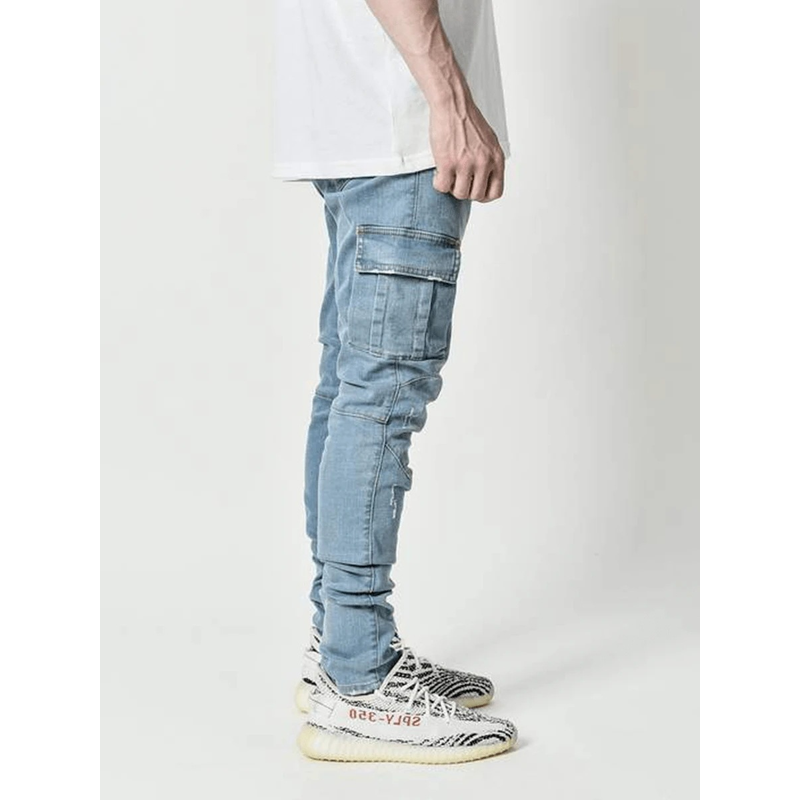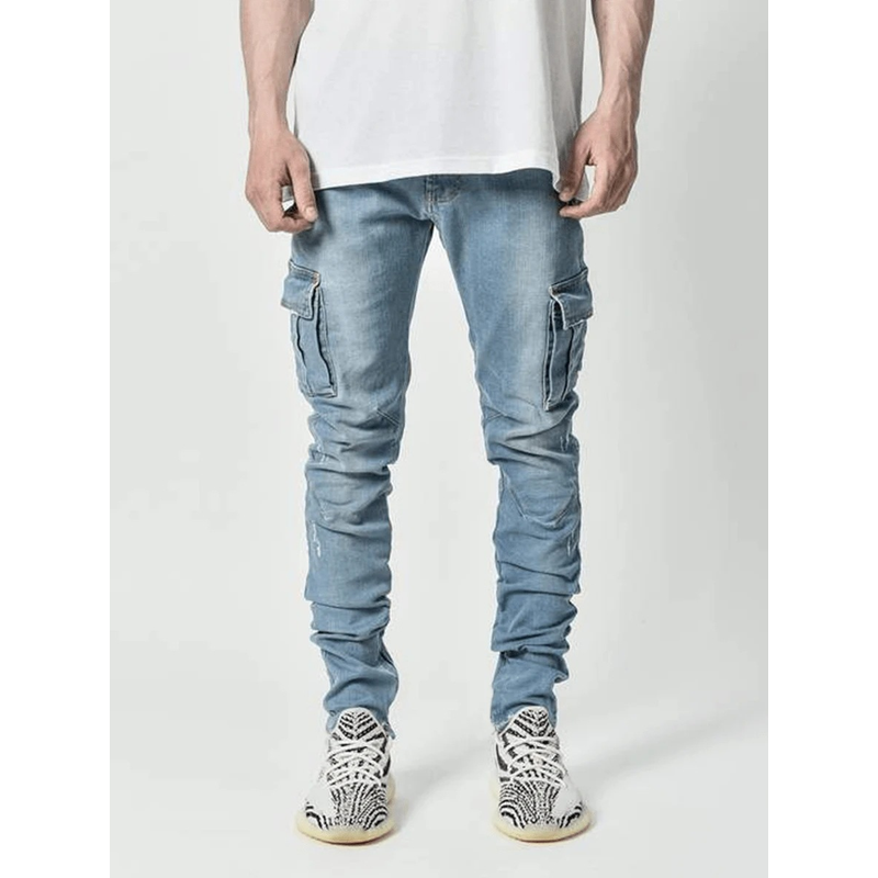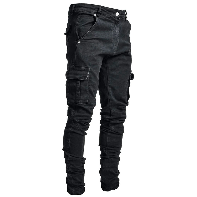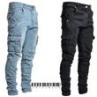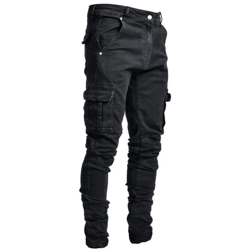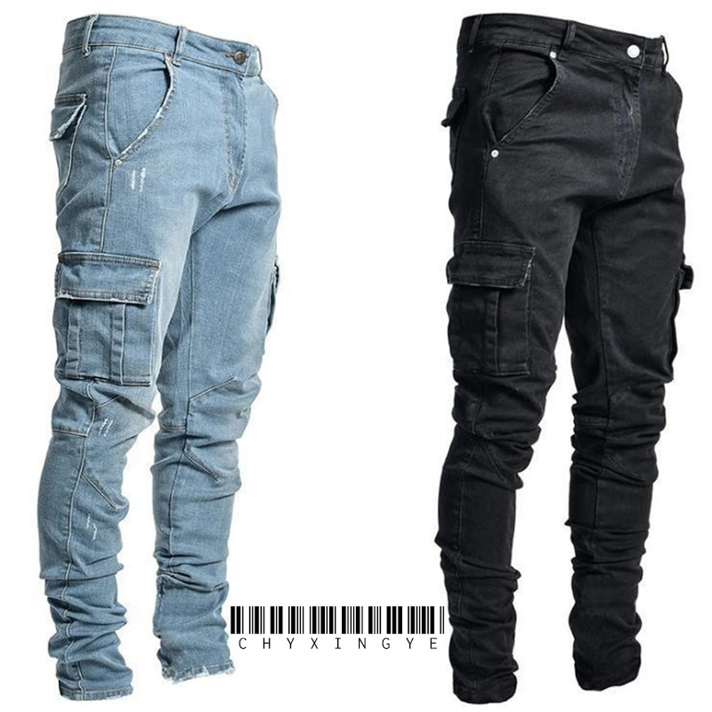 new Jeans Men Pants Wash Solid Color Multi Pockets Denim Mid Waist Cargo Jeans Plus Size Fahsion Casual Trousers Male Daily Wear