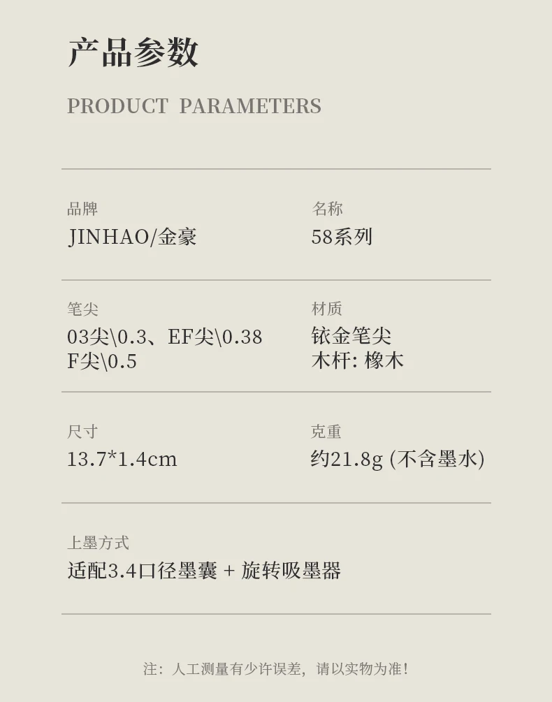 New JINHAO Fountain Pen Oak Pen Holder EF/F Pen Tip Student Hard Pen Calligraphy Practice Special Pen High Aesthetic Stationery